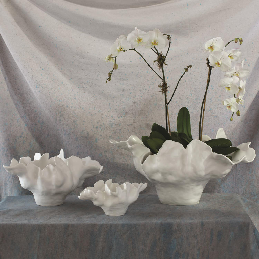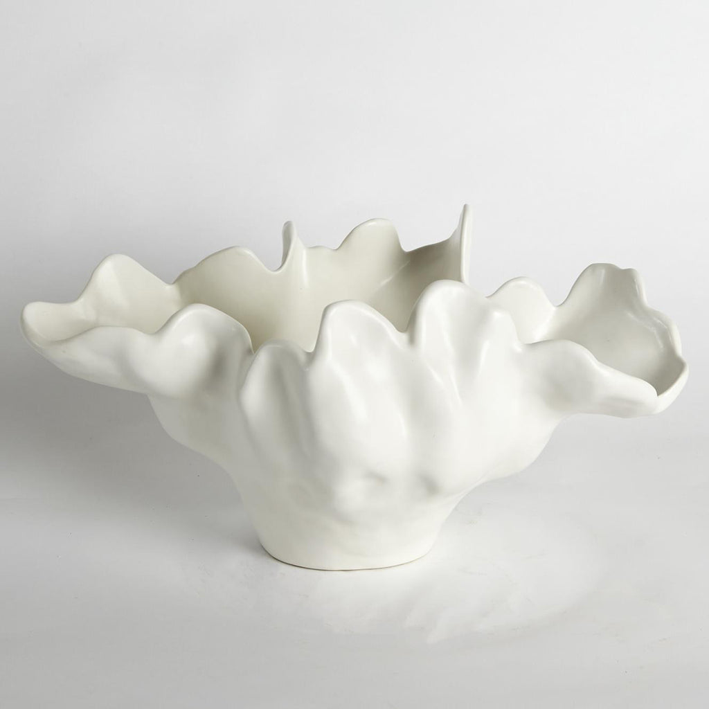 Based on the popularity of our Global Views Meteor Bowls, we have created two new sizes and a new color. The original of this grand statement piece was created by a Portuguese artist whose work first caught our designers' eyes at an art fair in Portugal. It took years of collaboration to arrive at this design that can be consistently produced. Multiple pieces are cast, bound together, and fired. Then it receives a reactive glaze and is fired a second time. There is a tremendous amount of artisan work that goes into every piece. Entire rooms could be designed around this beautiful and functional sculpture.
