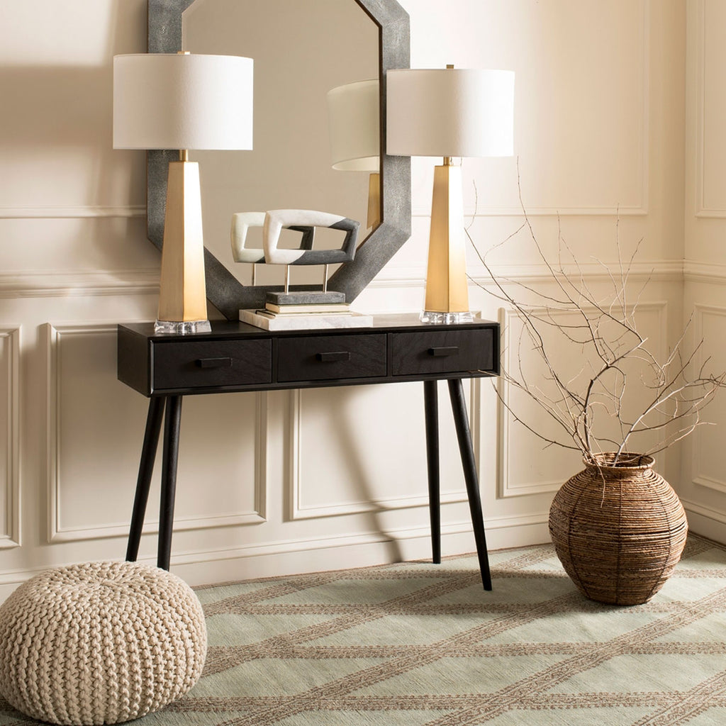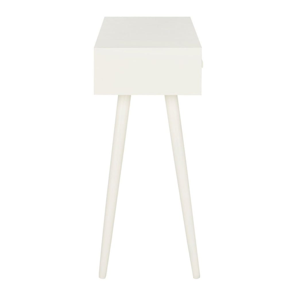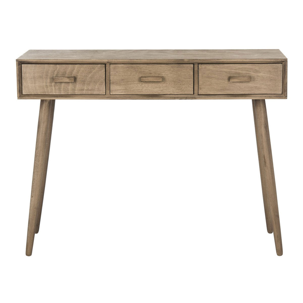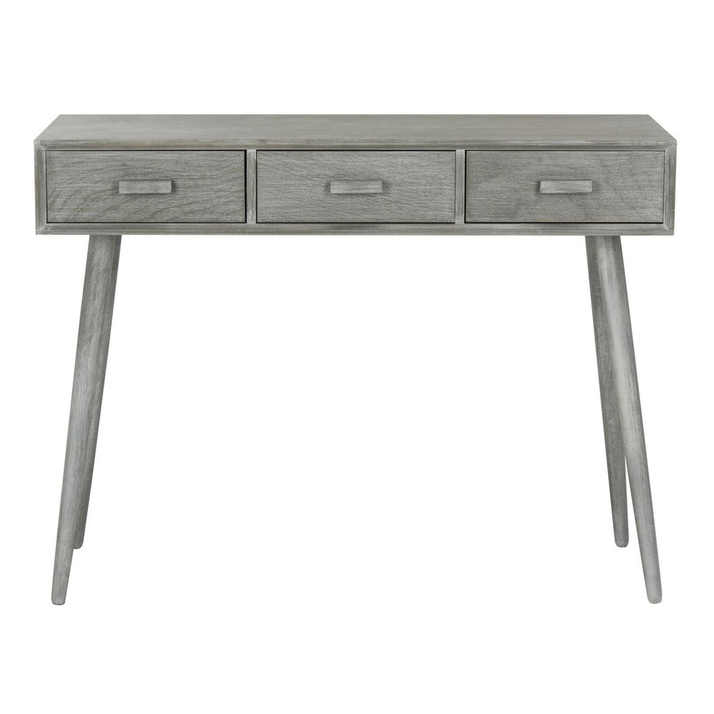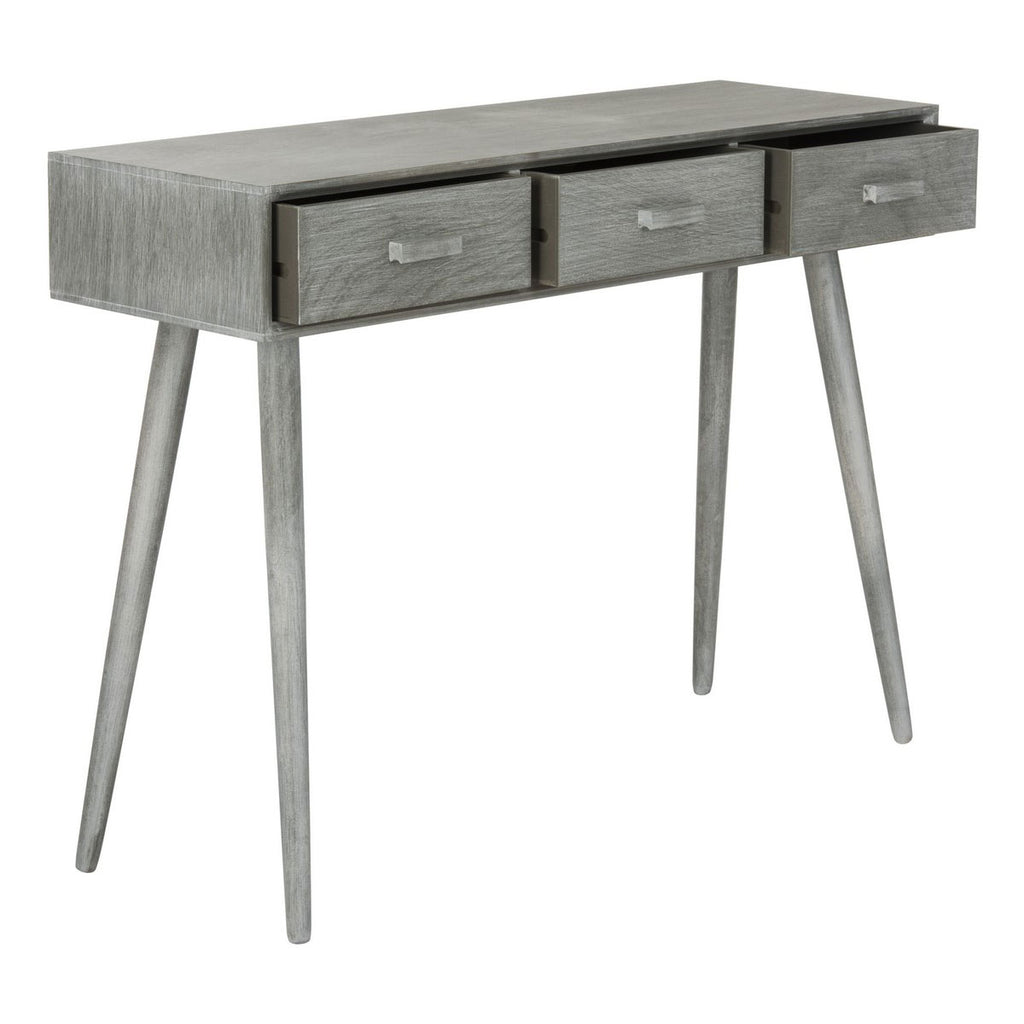 On a tiny street in Saint-Germain is the home of the contemporary French designer whose bespoke furnishings inspired this modern 3-drawer console table. Crafted with a pine wood blend, its distressed white hue was created by a special water-based paint.