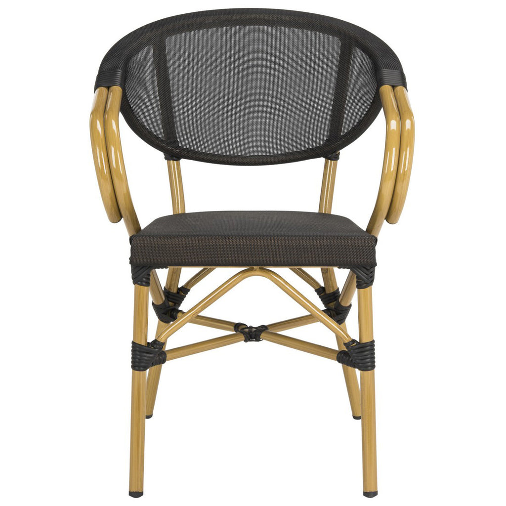 Designed for contemporary royalty, this stacking arm chair is a new classic. Created to pair the haute design of historic French furnishings with a casual luxe style, its black wicker construction makes it perfect for any outdoor living or dining room. Sold as set of 2.