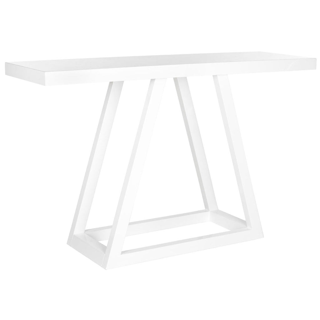 Sculptural and contemporary, the classic A-line frame of this console is a welcome addition to an entry hall or living room wool. A smooth white lacquer finish is the perfect foil to colorful objects of art and dramatic painted walls.