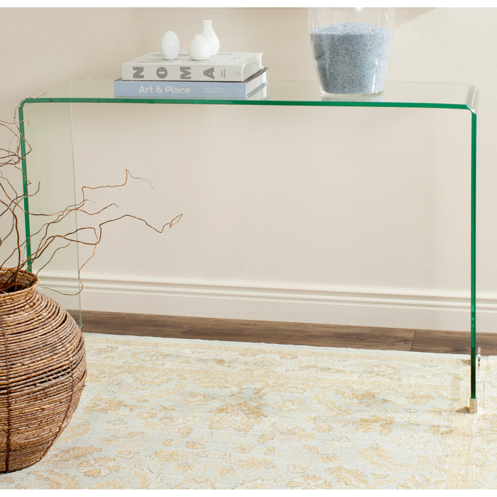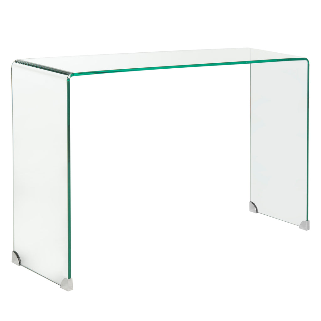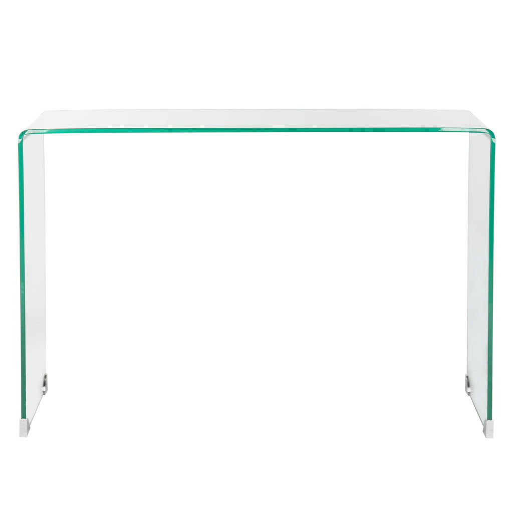 The epitome of minimalist chic, the classic Highland Console Table is artfully formed from a single piece of tempered glass. Whether dressed up with accessories, or left unadorned as a sculptural form, its clear glass silhouette appears to float in a room.