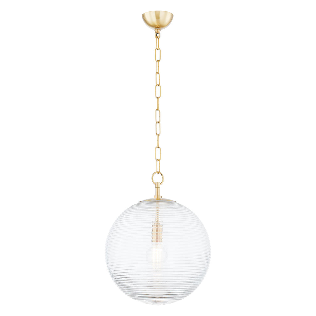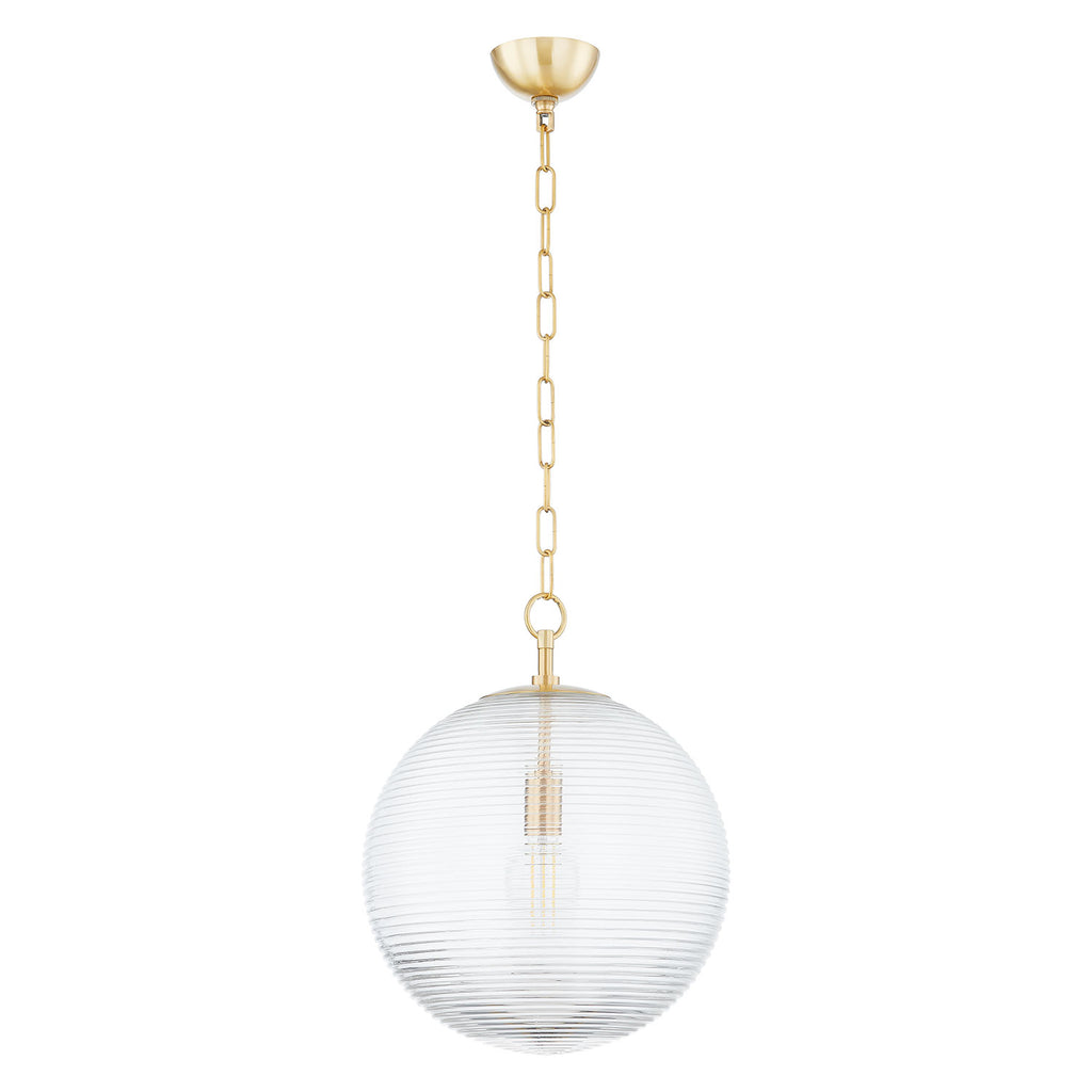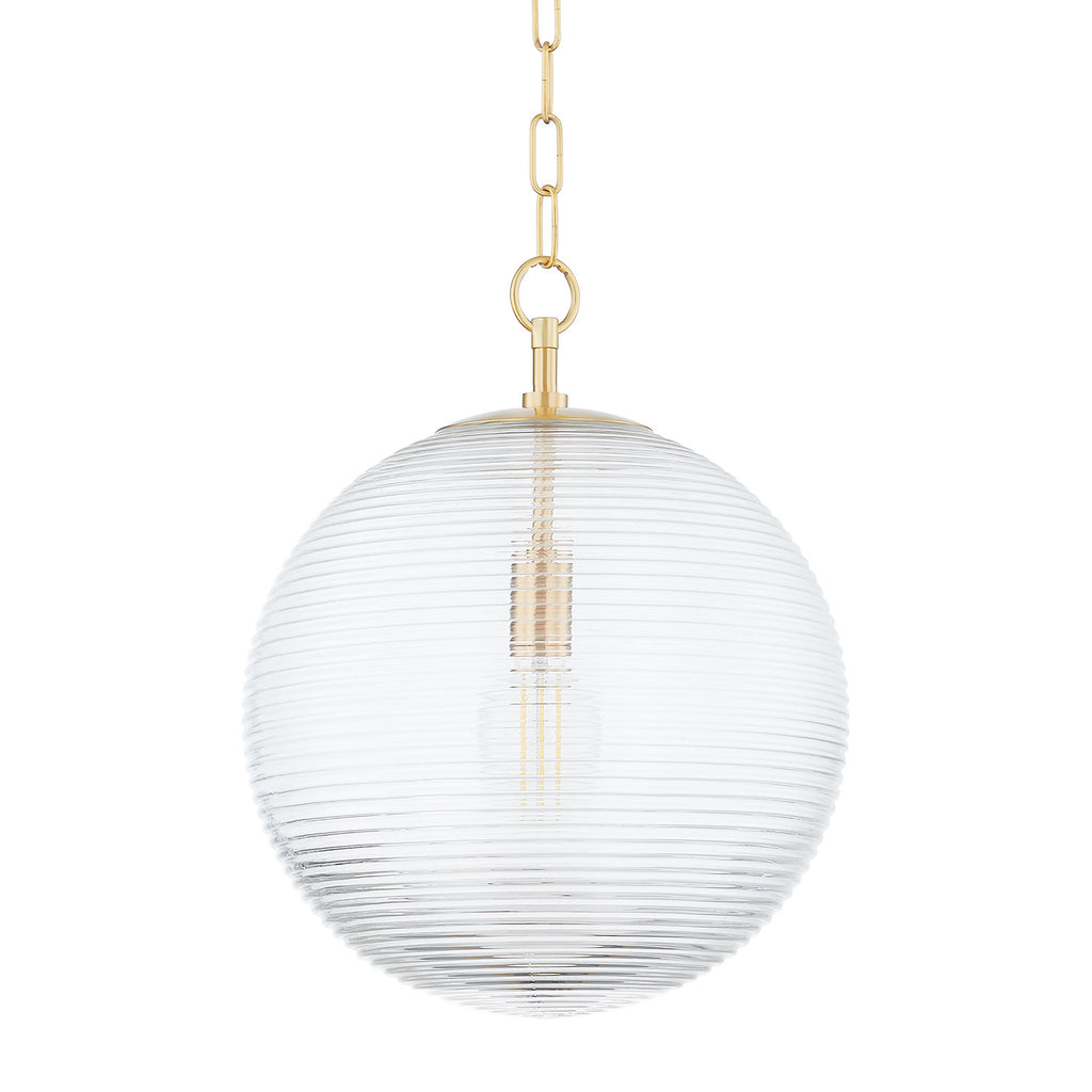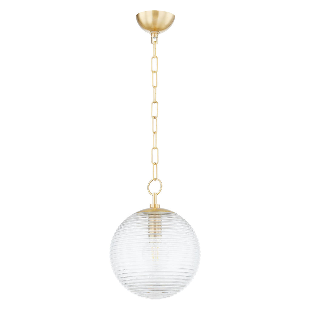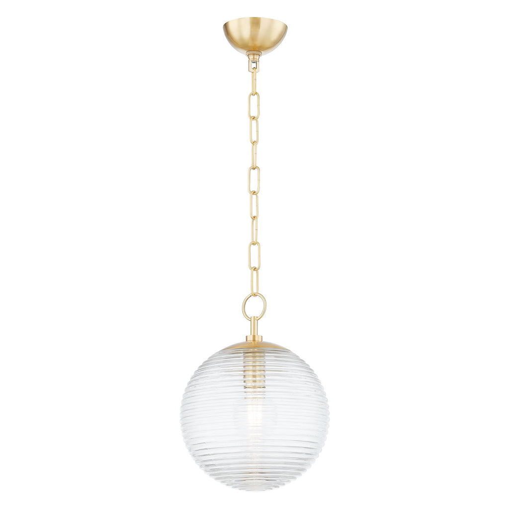 High-quality and exceedingly creative, Mitzi delivers a semi-nostalgic classic lighting collection with streamlined contemporary elements that instantly upgrade your space. Suspended from the ceiling, pendant lighting by Mitzi offers extra light expression exactly where you need it with a functional high-design feel. Influenced by vintage Holophane style glass fixtures, Sara gives the classic look a modern update. The clear ribbed glass globes were designed for maximum light and refraction. Available as a flush mount, wall sconce or pendant light, style Sara in multiples down hallways and over kitchen islands or alone above coffee or dining tables to fill a space with bright light and sleek sophistication. The lamp's ribbed ceramic base is similarly influenced and adds texture and a pop of color to any tabletop.