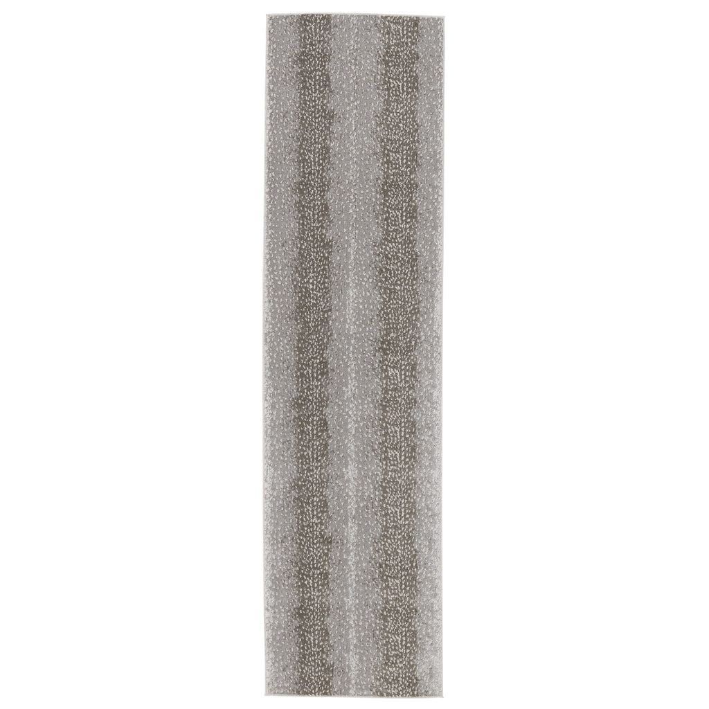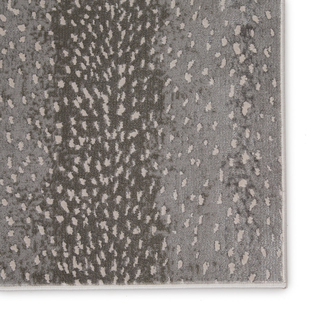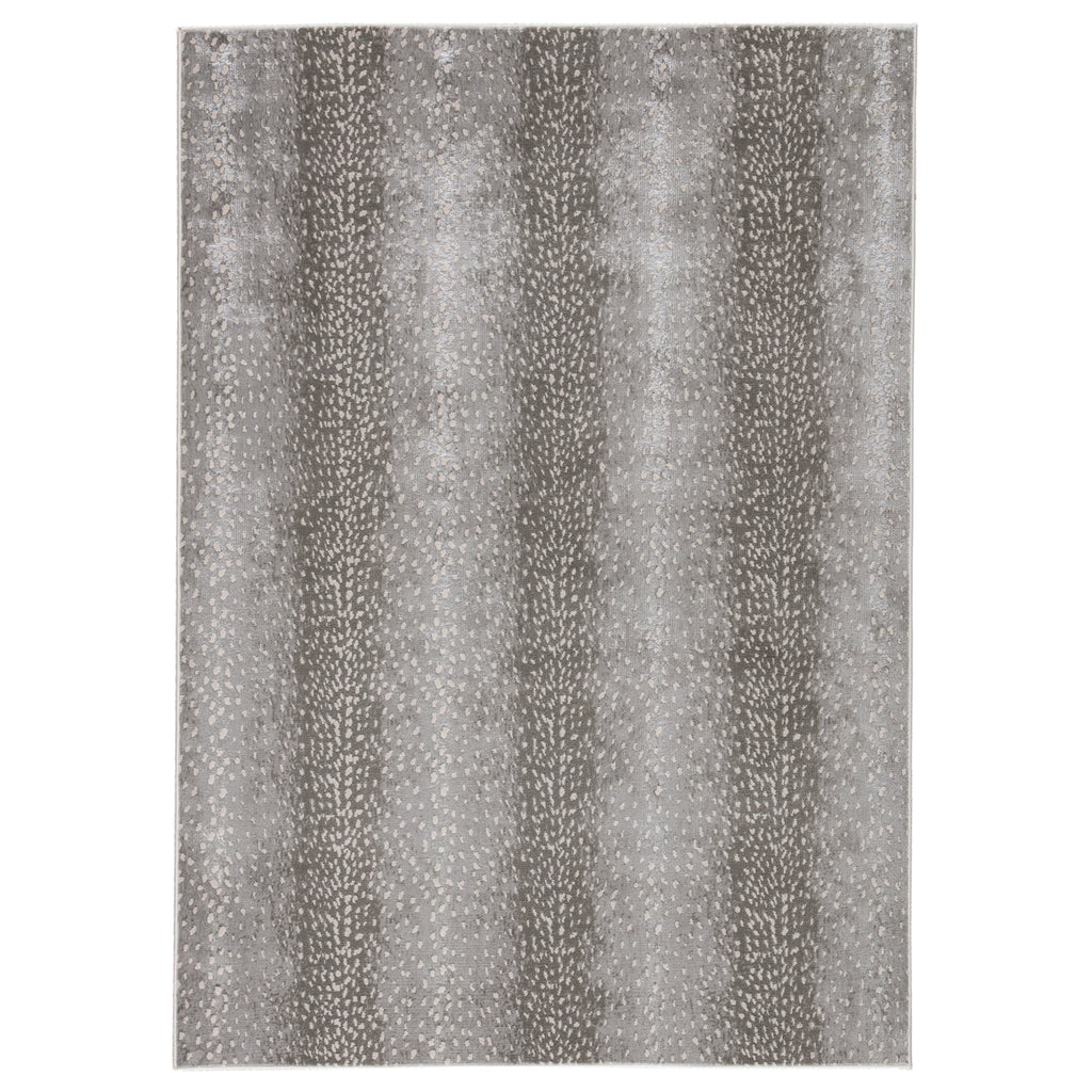 The show-stopping yet surprisingly versatile appeal of the Jaipur Catalyst collection brings contemporary edge to any home. The gray and silver Axis rug's sophisticated, spotted animal print is familiar and chic, perfect for adding texture and intrigue to a room. This power-loomed rug features metallic polyester fibers blended with stain-resistant polypropylene for a brilliant sheen from various perspectives.