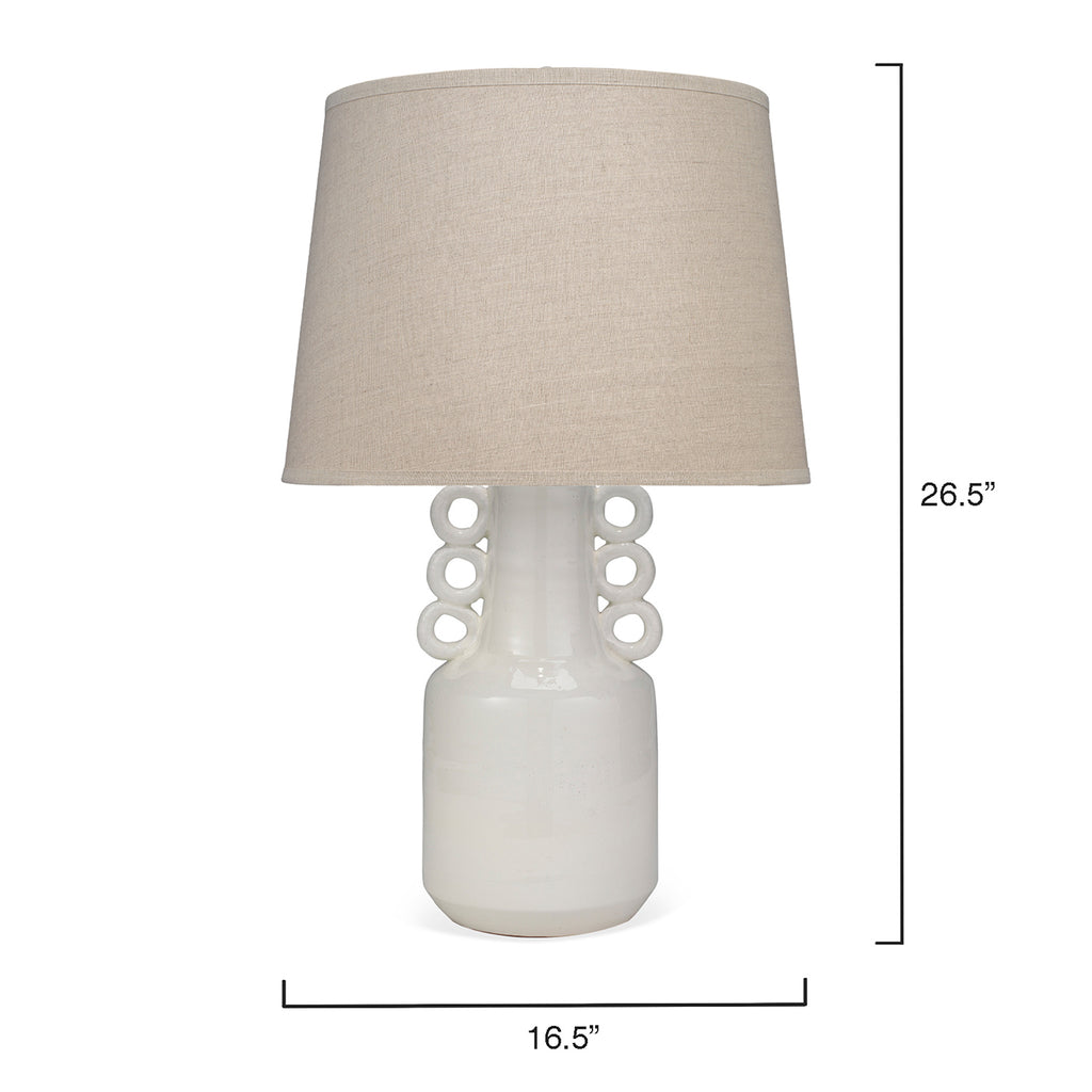 The Circus lamp come in in white ceramic with 100% linen shade. This design is both distinctive and versatile.