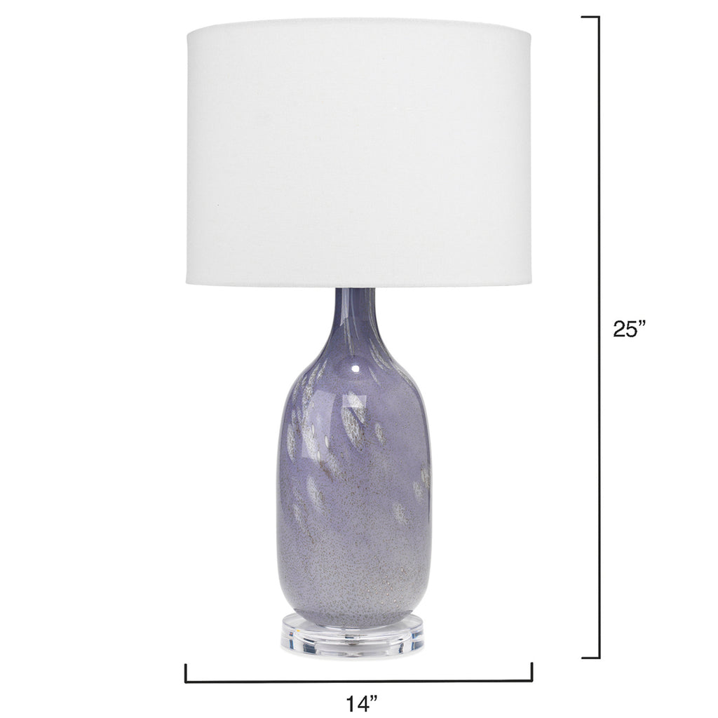 Brighten any room with the etheral hues of this accent lamp. Its handblown glass features a lavender finish with silver highlights and rests on an acrylic base. Balanced with a linen drum shade for a soft contrast and refined glow.