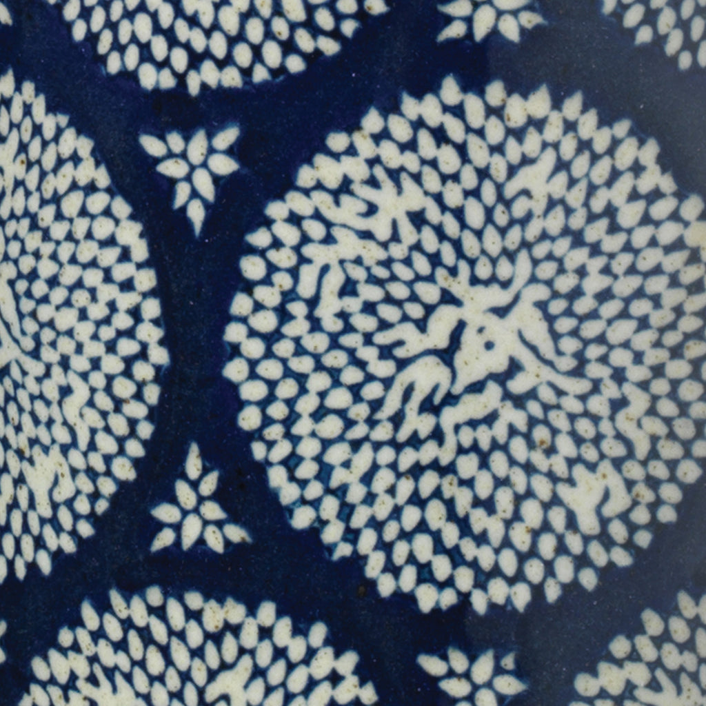 An updated traditional Indian block pattern in a beautiful Cobalt Blue and White to create a modern feel perfect for today's homes. The Jamie Young Neva table lamp is paired with a great 100% linen shade.