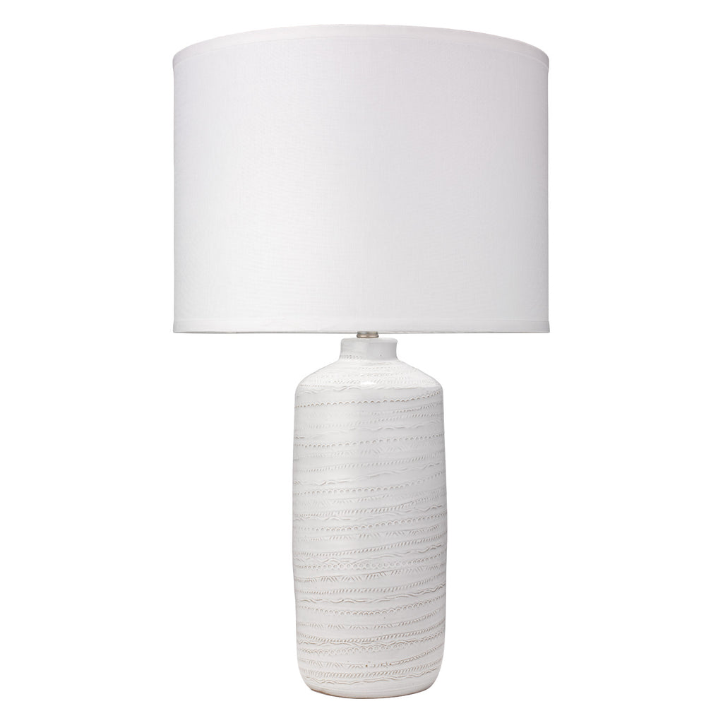 Simple yet sophisticated, creamy white, textured and hand-glazed ceramic lamp adds the perfect amount of subtle interest to any room.