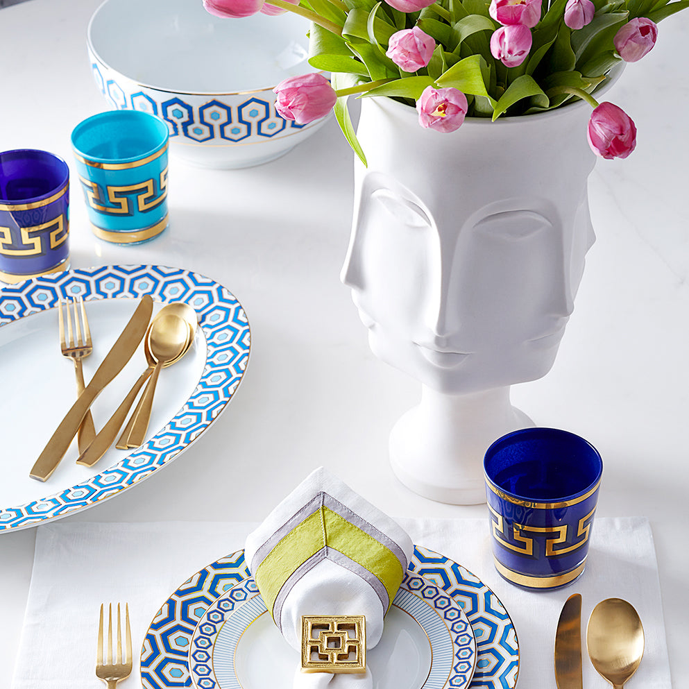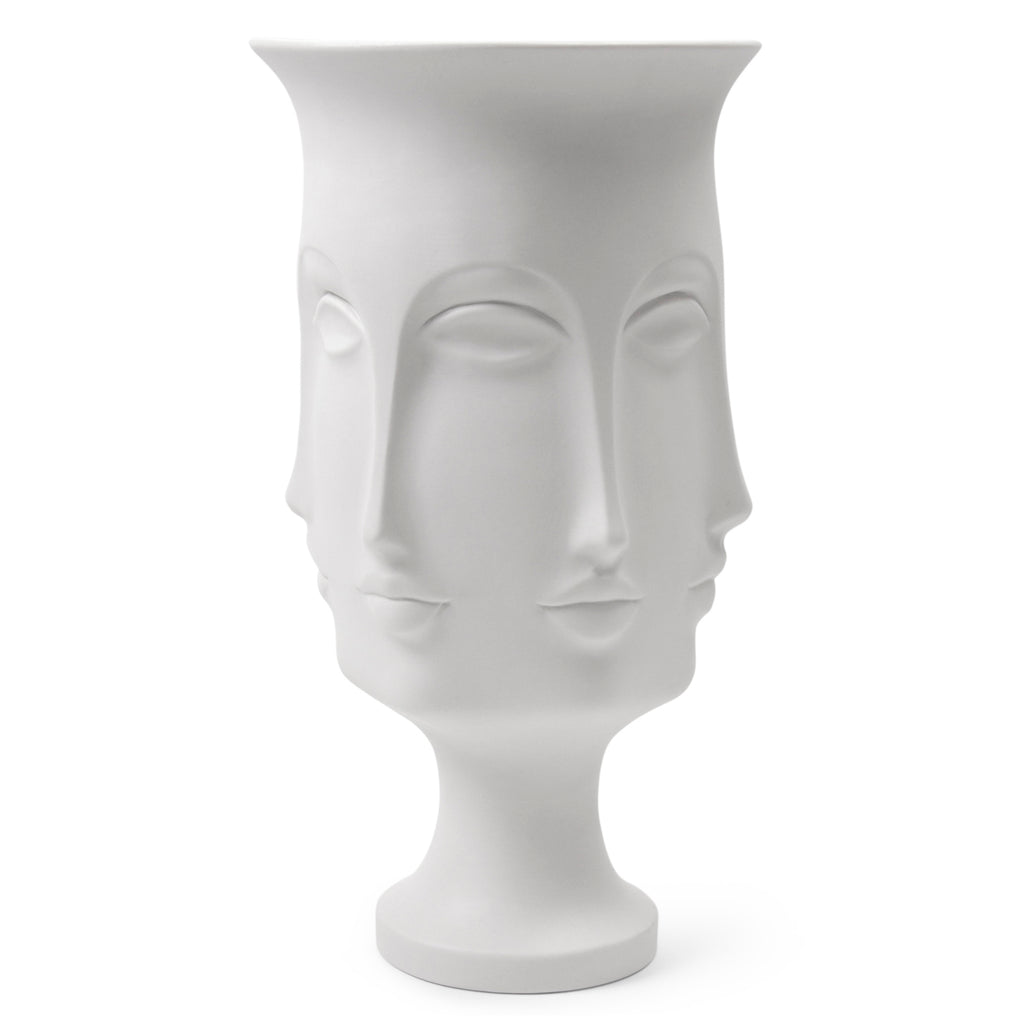 The Jonathan Adler Dora Maar Urn gives good face from every angle, an unglazed finish highlighting the muse's flawless features in fabulously delicate detail. Inspired by Dora Maar, the French photographer, poet, and painter best known for being a lover and muse of Pablo Picasso. Jonathan throws the models for the Muse vessels and then substitutes our signature geometric relief patterns with body parts—faces, breasts, lips—to create a surreal style. Each piece is made from unglazed matte porcelain to accentuate the forms and is inspired by our favorite artists' muses.
