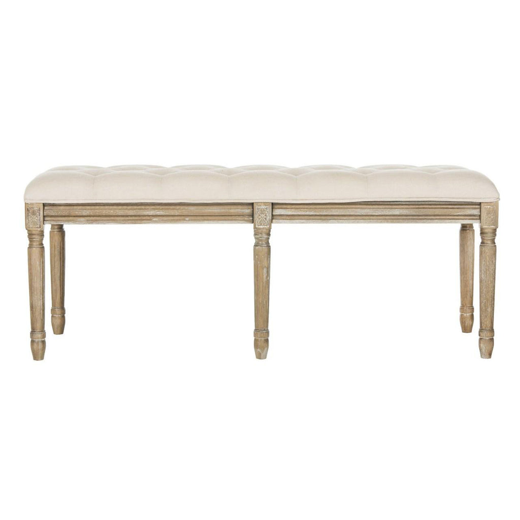 Designed for those who embrace the luxury of fine craftsmanship, this traditional wood bench was inspired by the opulent Old World style furnishings of French royal residences. Outfitted in tufted neutral beige or grey velvet upholstery, it brings ambiance to any room.