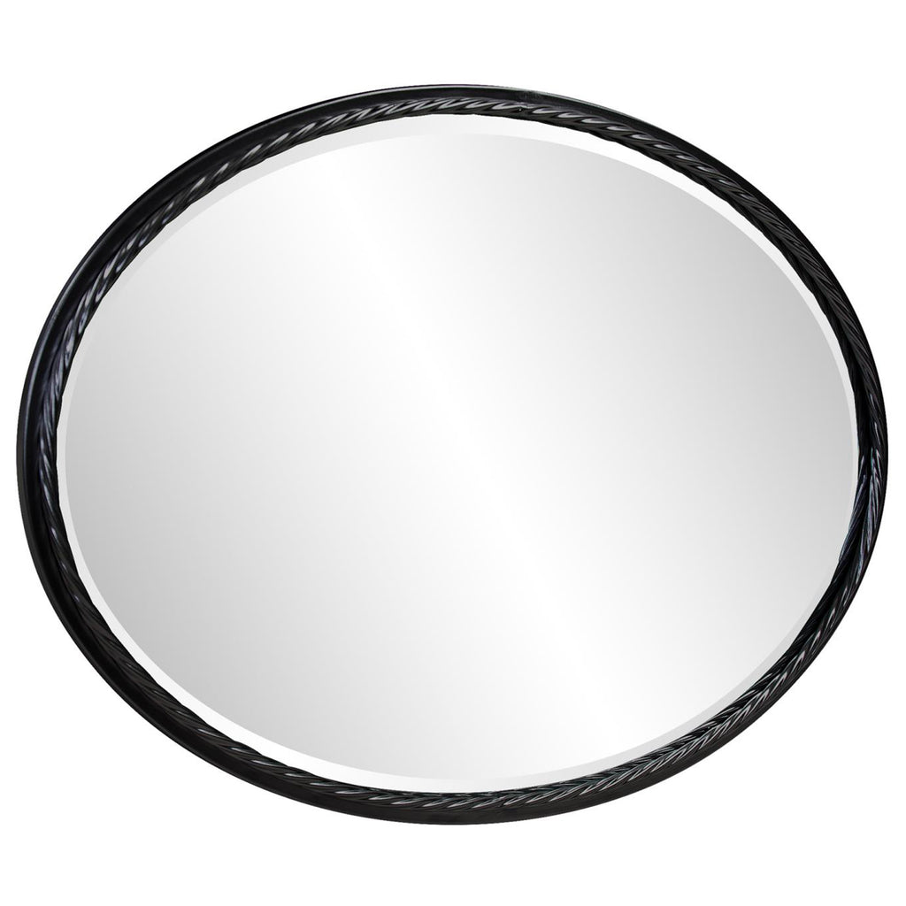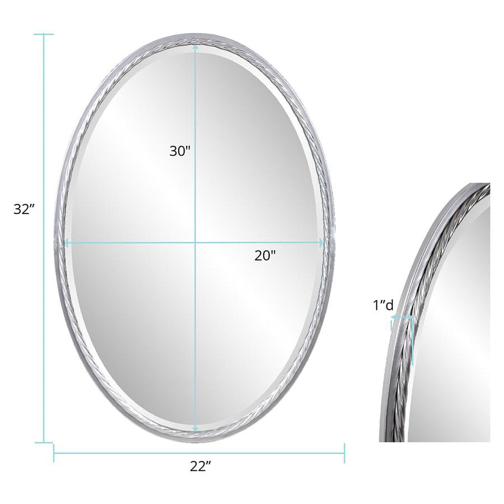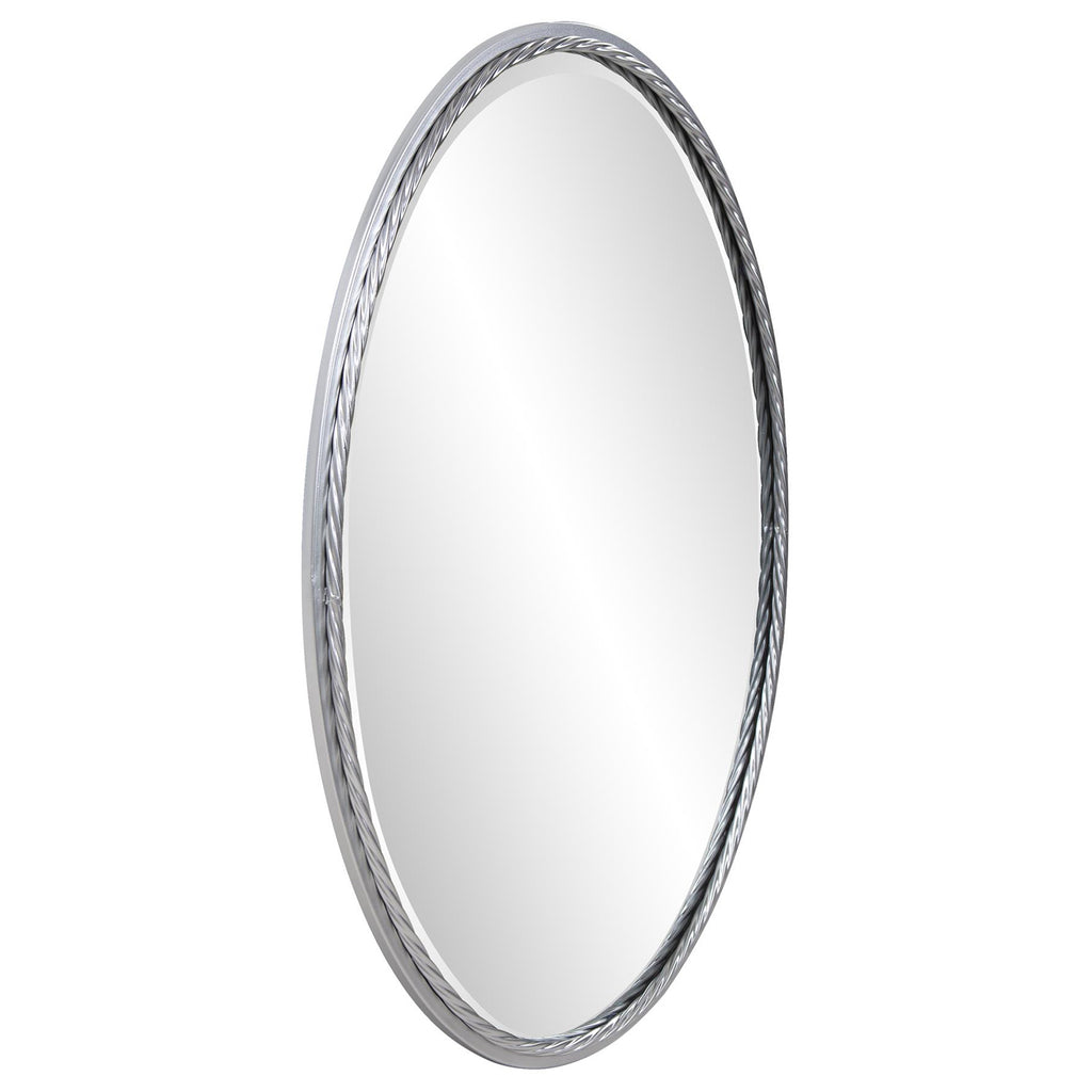 The classic laid rope design has been adapted and modernized in a new oval hand forged metal frame. Each mirror is crafted and then finished in a matte black or bright silver to highlight all of the detailing. This mirror is completely at home in your powder room to entryway.
