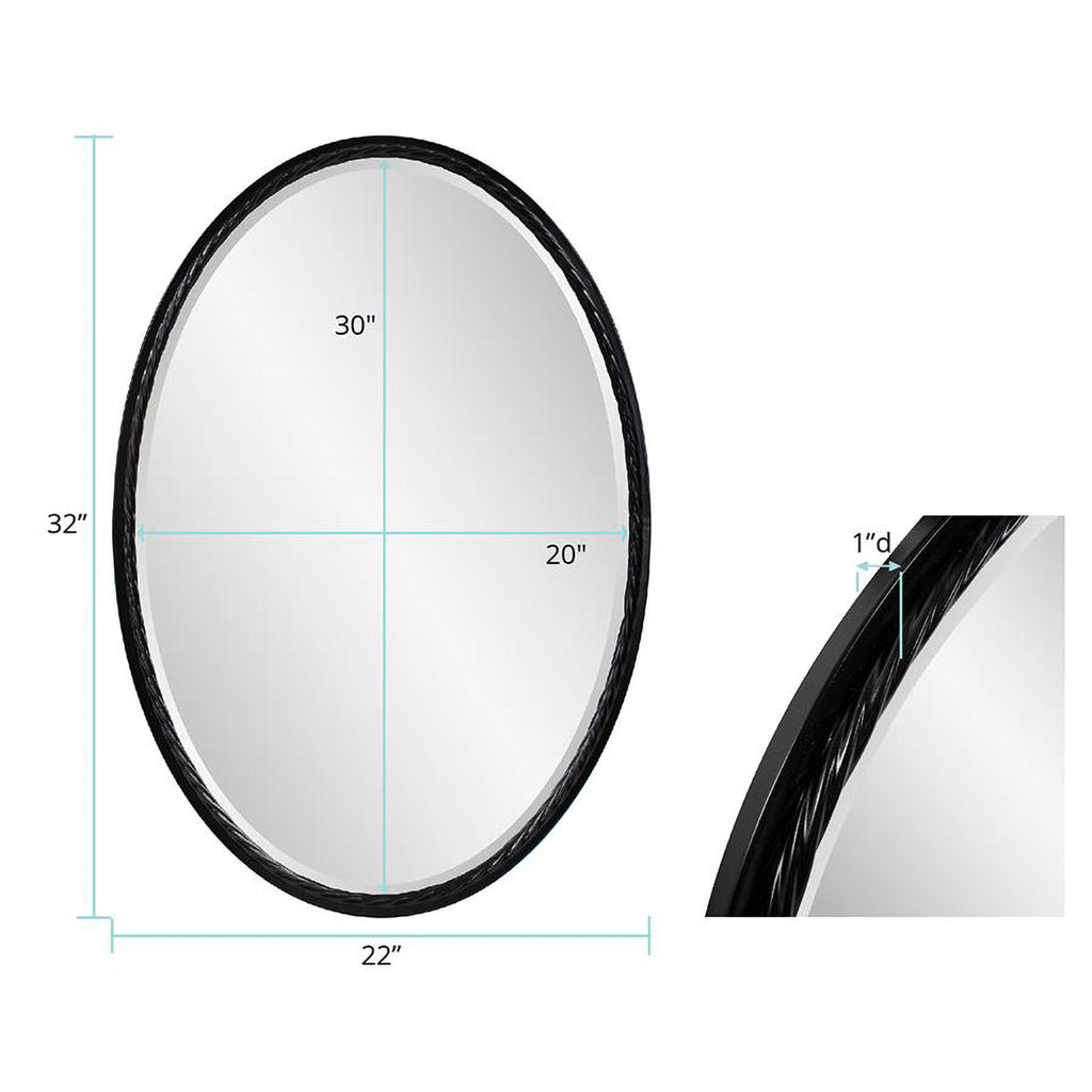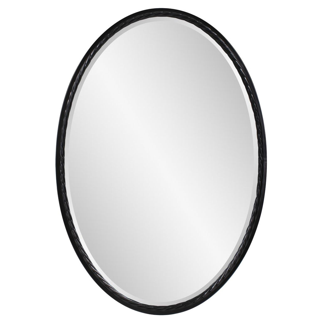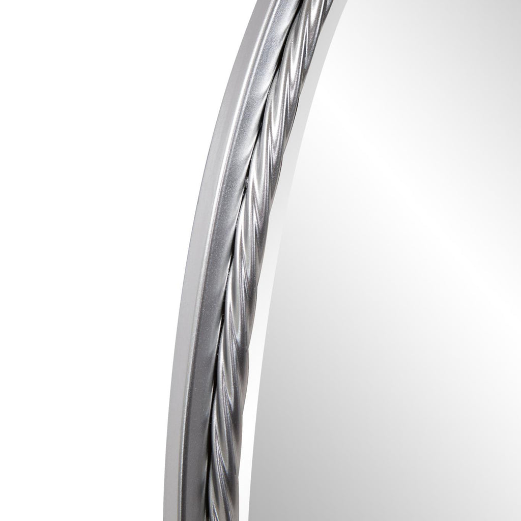 The classic laid rope design has been adapted and modernized in a new oval hand forged metal frame. Each mirror is crafted and then finished in a matte black or bright silver to highlight all of the detailing. This mirror is completely at home in your powder room to entryway.
