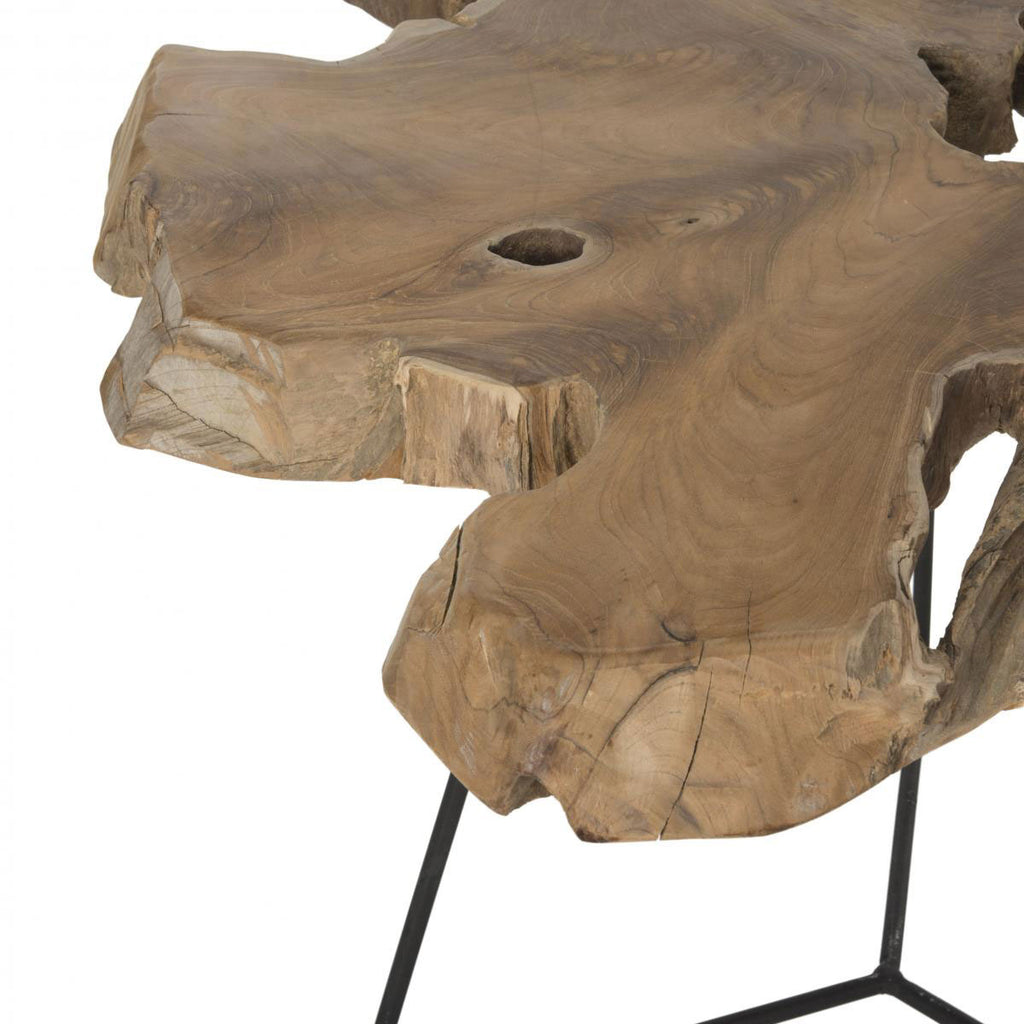 Rustic chic meets eclectic elegance in this coffee table combining a natural found wood top with a sleek modern base. A masterpiece of nature for indoor spaces, each contemporary table is slightly different with its own grain variations and patterns.