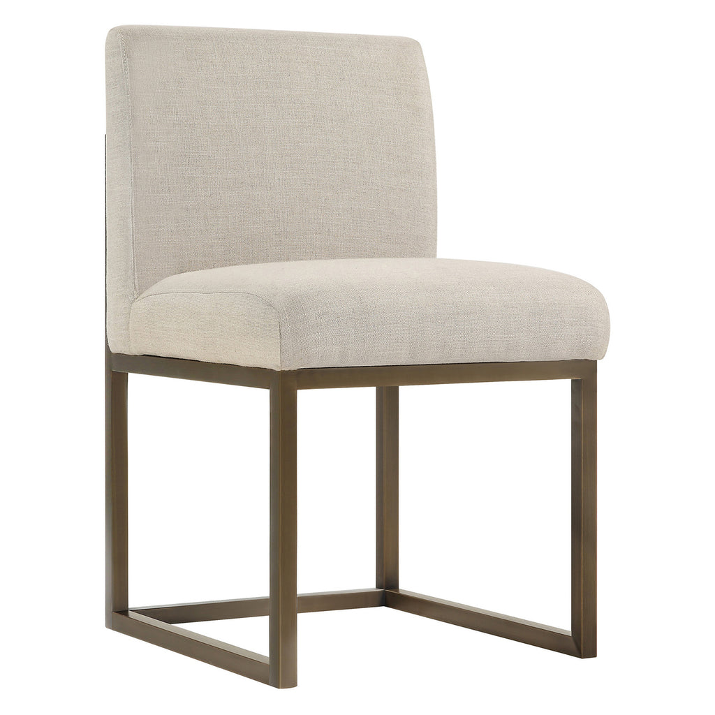 Demanding immediate attention, the fabulous design of our Mercutio chair is sure to add glam to any room. Sumptuous linen perched on a bronze colored stainless steel base provides a solid foundation for this effortlessly elegant chair.