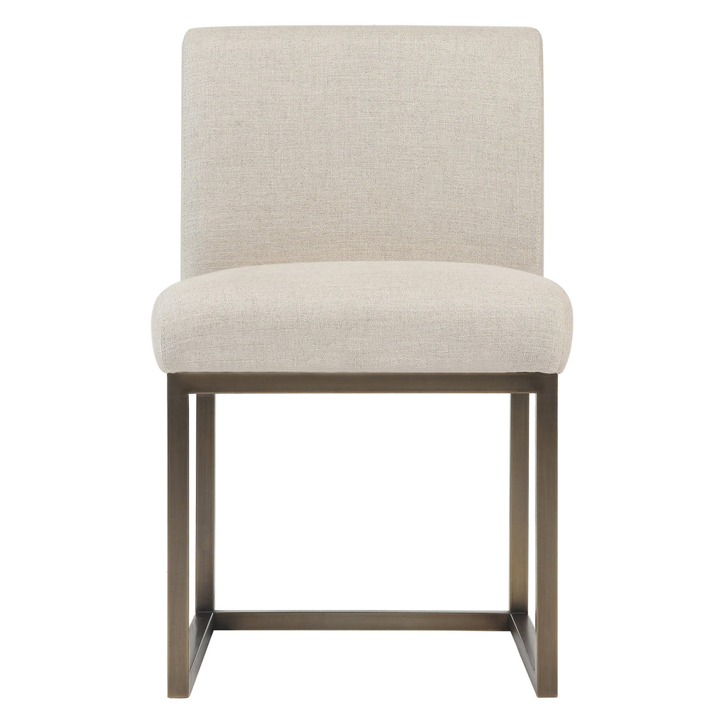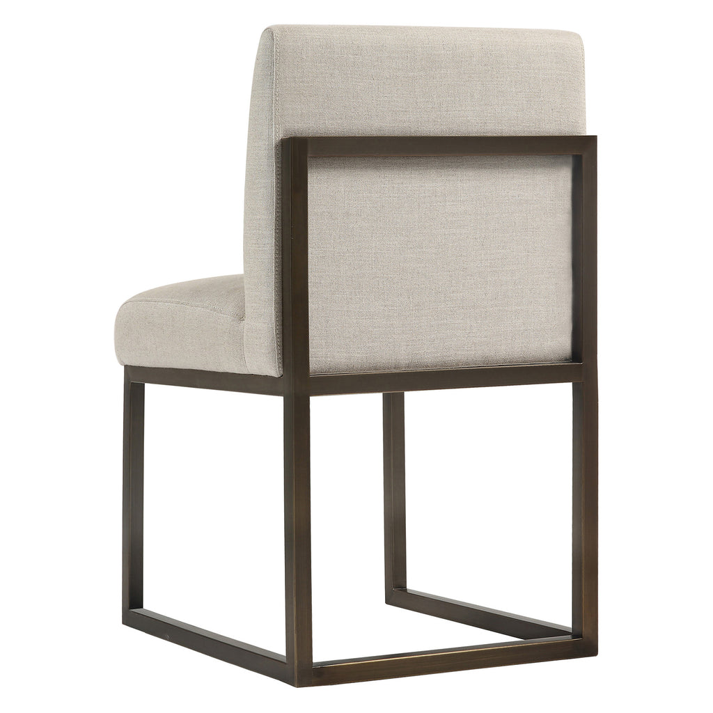 • Soft Linen Upholstery, Bronze Stainless Steel Base