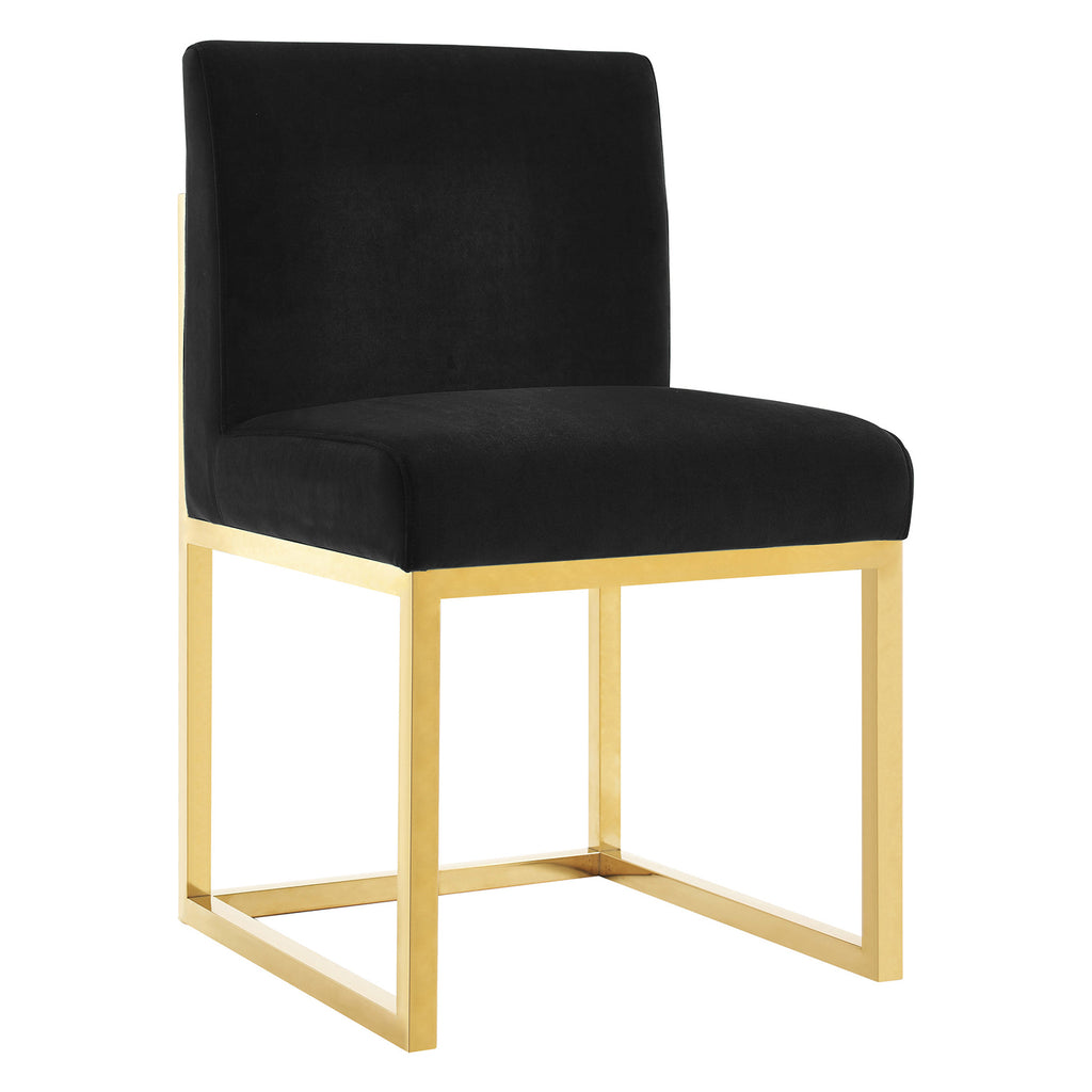 Demanding immediate attention, the fabulous design of our Mercutio chair is sure to add glam to any room. Sumptuous velvet perched on a gold stainless steel base provides a solid foundation for this effortlessly elegant chair.