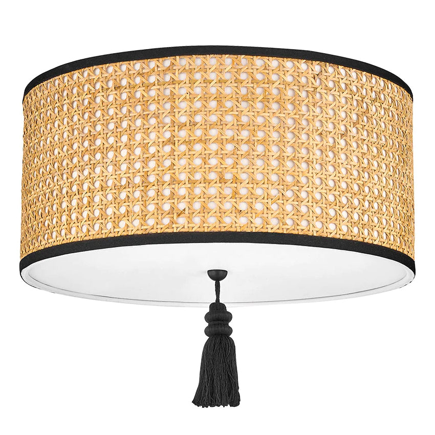 High-quality and exceedingly creative, Mitzi delivers a semi-nostalgic classic lighting collection with streamlined contemporary elements that instantly upgrade your space. A statement ceiling light or flush mount by Mitzi illuminates bedrooms, kitchens, and office spaces with soft, welcoming light at the flip of a switch. A bohemian darling, the Mitzi Dolores flush ceiling mount is brimming with theatrical flair. Dolores pays homage to the cane mania of the 70s, reinvented for today. Natural cane is woven intricately around a white cotton shade, contrasted with a soft black finish. The flush mount and pendant versions feature a decorative tassel for good measure.