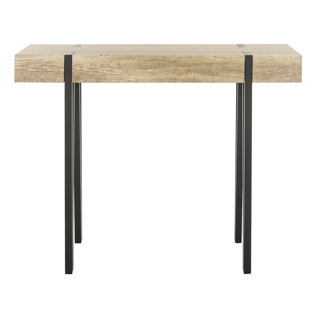 Bold and beautiful, this rectangular rustic midcentury wood top console table is a modern heirloom. Inspired classic American designers, its canyon grey finish and sinuous black hairpin legs lend instant character to the hallway, foyer or living room.