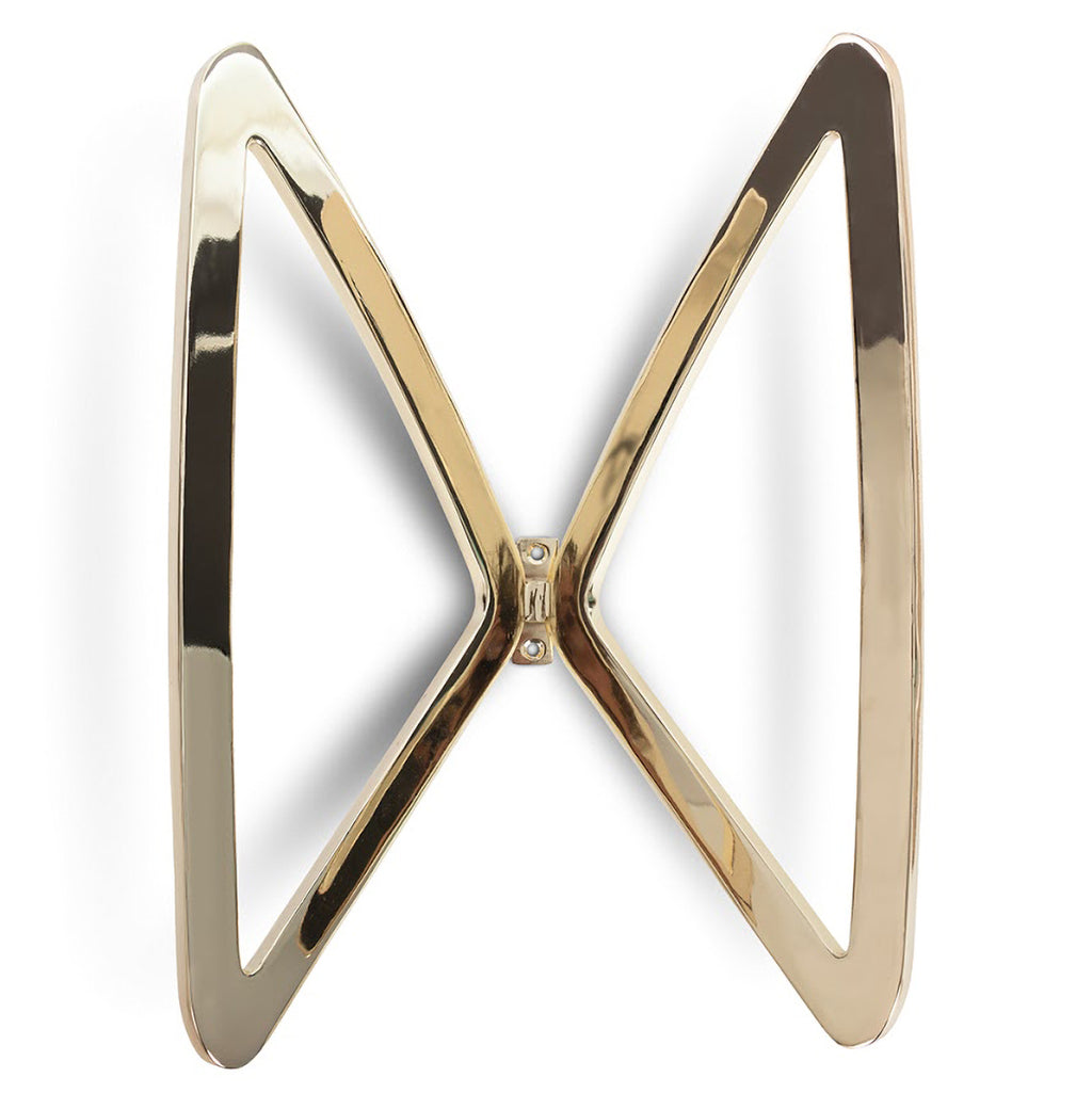 With ribs of stainless steel that meet in the middle to mimic the arc of its namesake's wings, the Butterfly Gold Wall Art is a modern wall sculpture that will bring panache to a room. The engineered steel piece with its plated brass finish has a surprising power, as it casts echoing shadows on the wall to bring it greater depth.