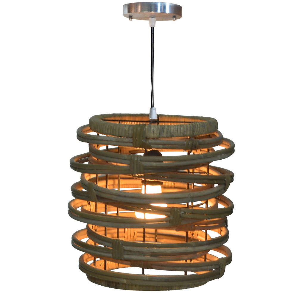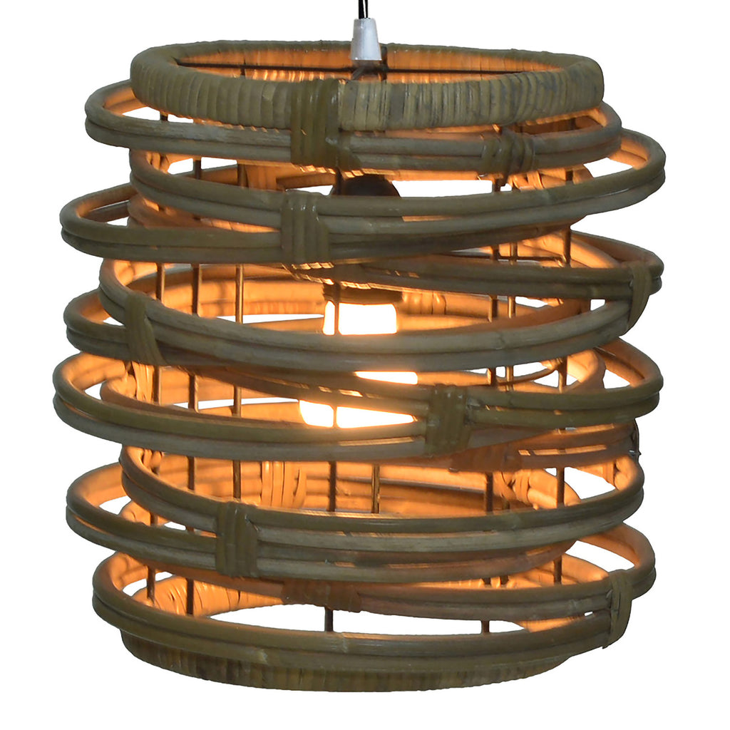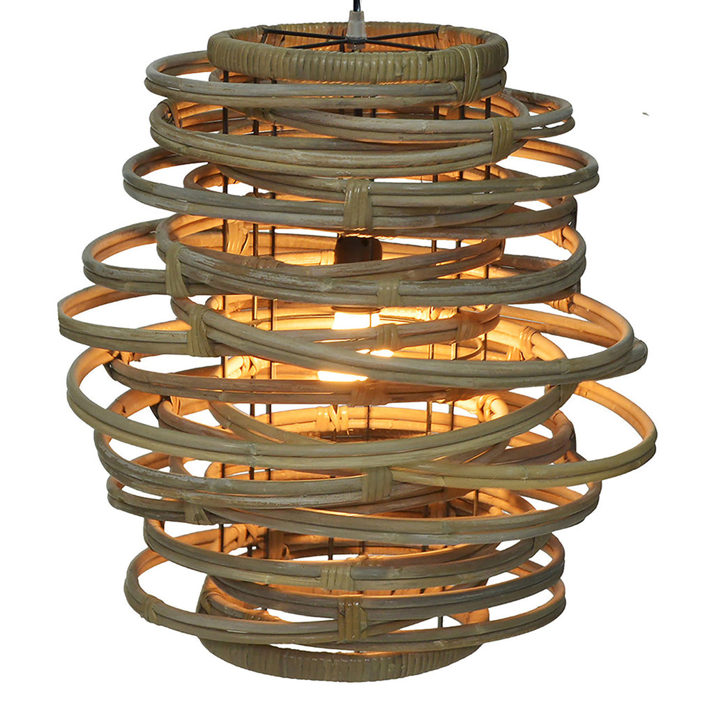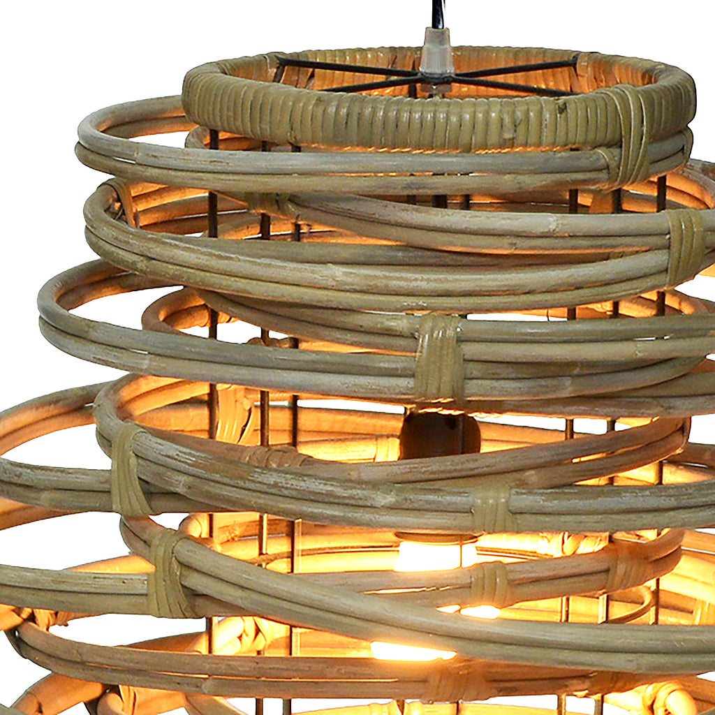 Like a swirling and festive party decoration, this whimsical pendant lamp instantly brings any room to life. Crafted of rattan in an artistic spiral around a metal frame, it's available in three sizes. Arrange a group in matching formation across a large area, gather a selection of varying heights in a smaller space to make a bold design statement, or give full focus to an individual lamp, creating interest wherever you choose to hang it.