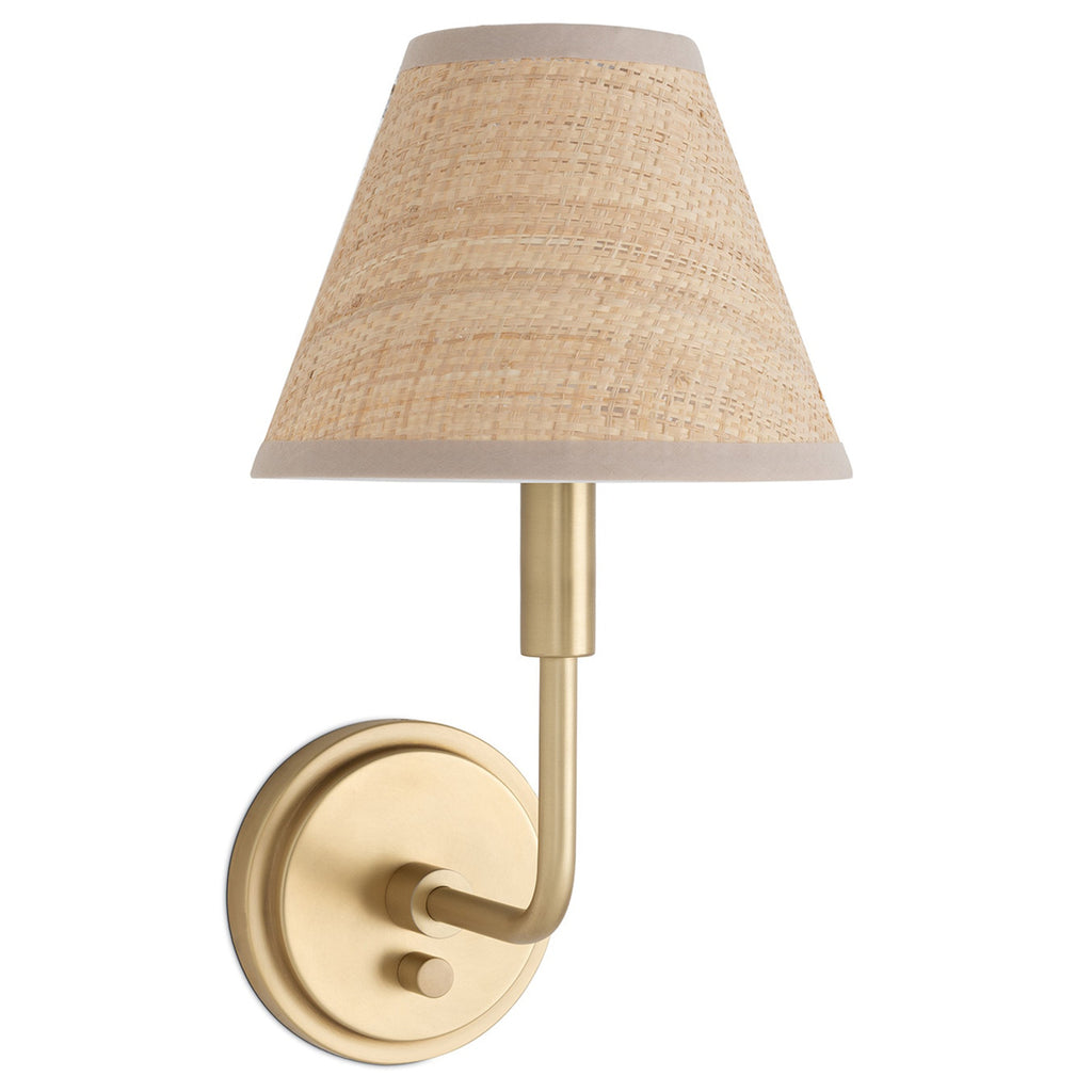 The Polly Wall Sconce embodies refined elegance with its single rattan shade, which allows light to shine through its woven texture, casting a warm and inviting glow. The gently curved arm enhances its classic charm, enabling the sconce to blend seamlessly with both modern and traditional styles. Ideal for any space, it offers graceful and stylish illumination, creating a welcoming atmosphere wherever it is placed.