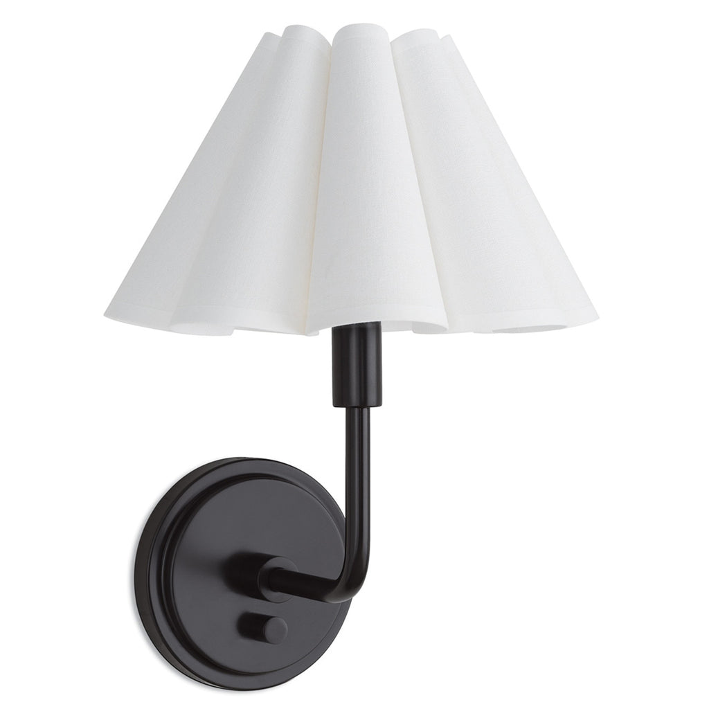 The Polly Wall Sconce brings an air of refined elegance with its single scalloped shade, casting a warm and comforting glow on any wall and highlighting its rich, verdant hue. The gently curved arm adds a touch of classic sophistication, blending seamlessly with both modern and traditional styles to enhance any space with grace and style.