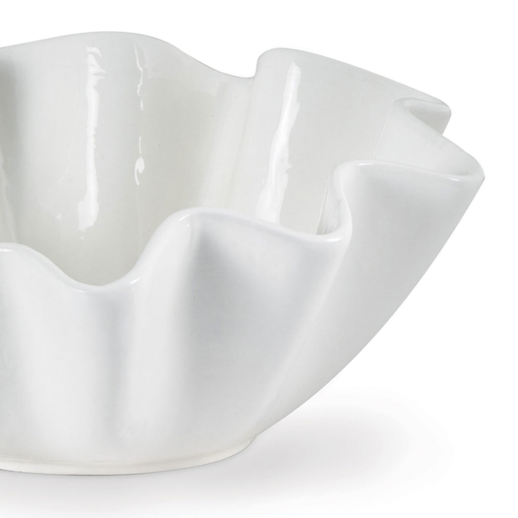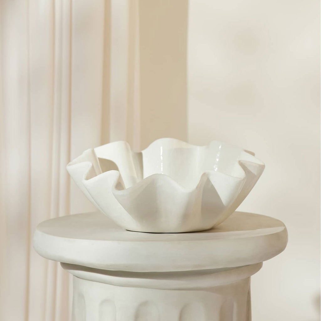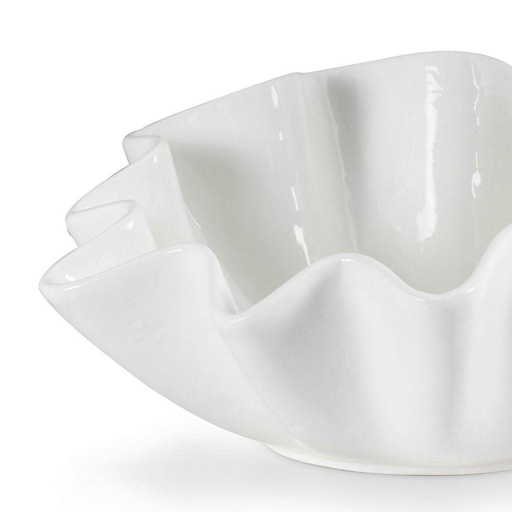 This bowl was carefully crafted by skilled craftsmen who has mastered the technique of creating timeless ceramics. With it's creamy white finish, and the ruffled edges it will playfully interact with any space.