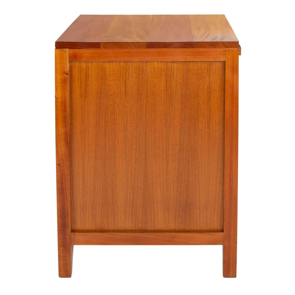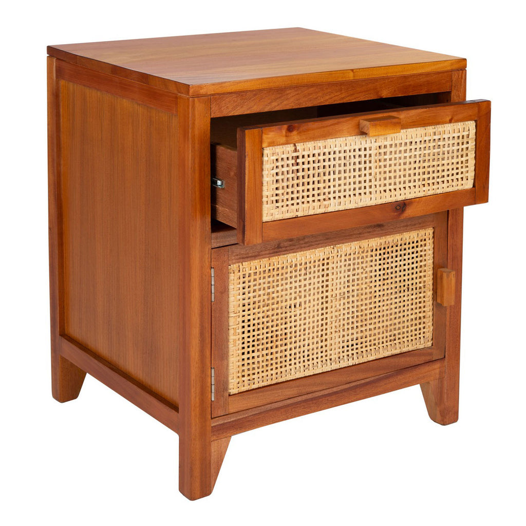 Bring relaxed coastal ambiance to your décor with this Devon Nightstand. Devon’s door and drawer are given soothing tropical flair with natural rattan, pairing beautifully with its matching natural finished mindi wood frame. Sleek bar pulls elevate the look, making it perfect in any bedroom.