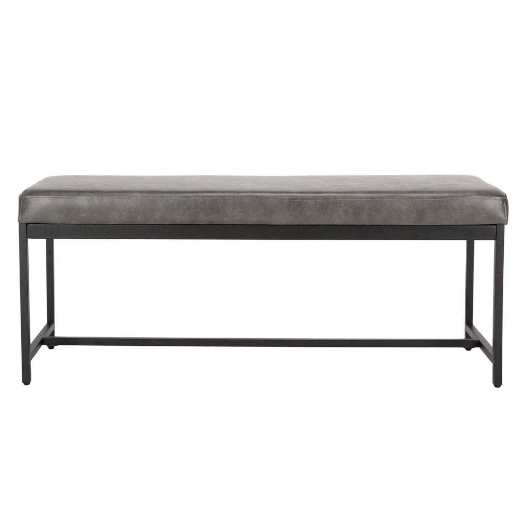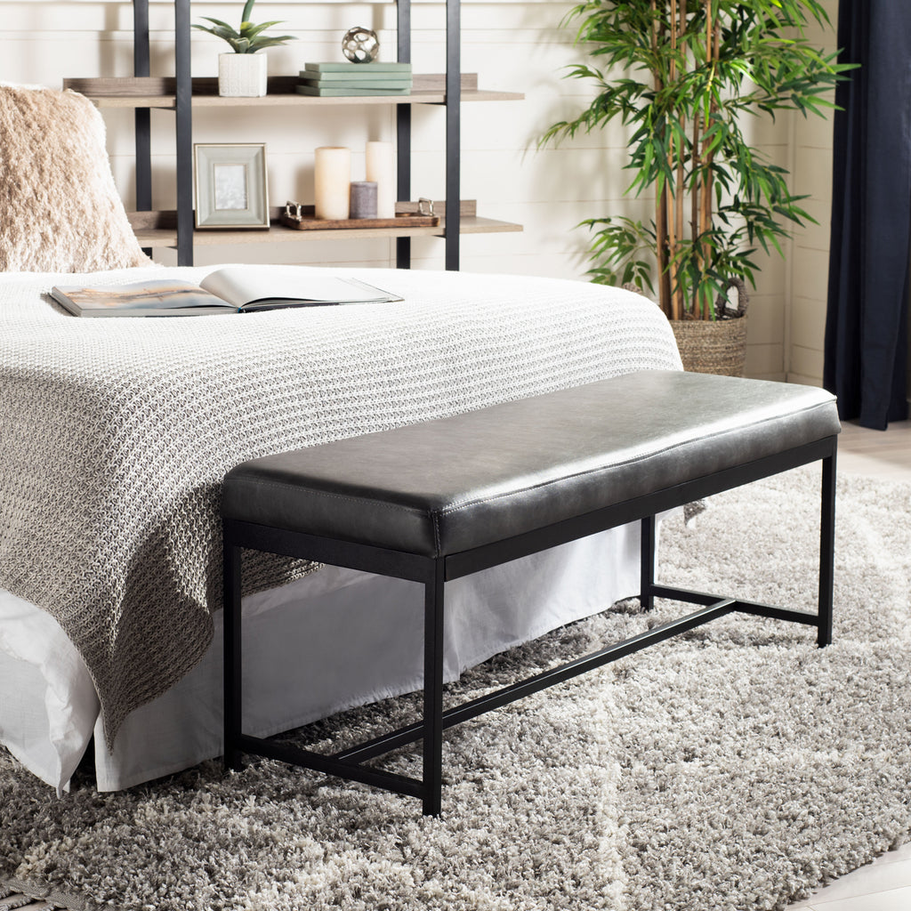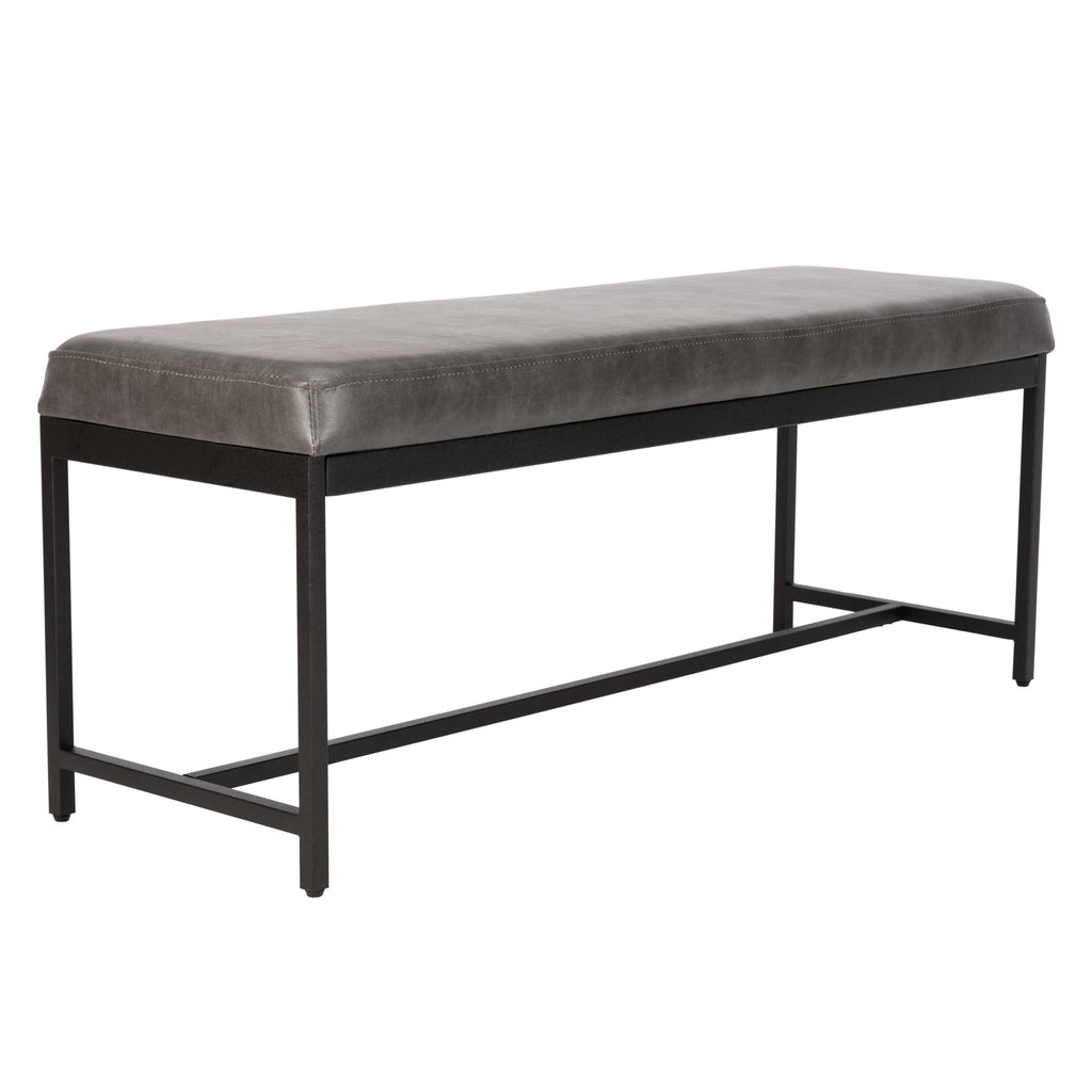 Designed for maximum versatility, this stylish faux leather Ruskin bench is perfect upgrading any living room. Its generous rich brown upholstery and sleek black metal legs complement any décor. Use as extra seating or for a tabletop for impromptu snacks.