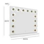• Mirror dimensions: 25.6"W x 2.5"D x 21.5"H, Base: 25.6"W x 7.9"D x 1"H