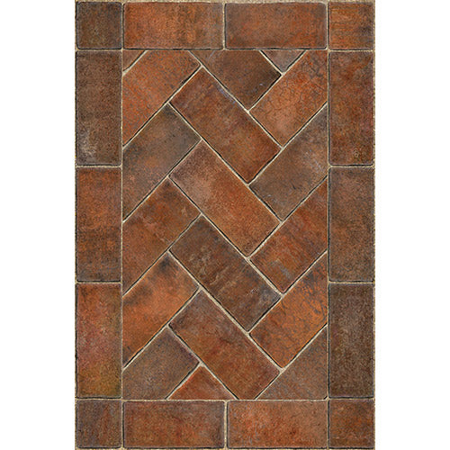 The Trip to Market Square vinyl floor cloth  from the Williamsburg Herringbone collection was inspired by vintage linoleum. Perfect for kitchens, baths, screened in porches and patios, the durable vinyl floorcloths are easy to clean and always lay flat. Vinyl floorcloths are made with two-ply vinyl with latex padded backing, designed to be fade-resistant in direct sunlight and durable against the elements but work best in controlled outdoor environments.