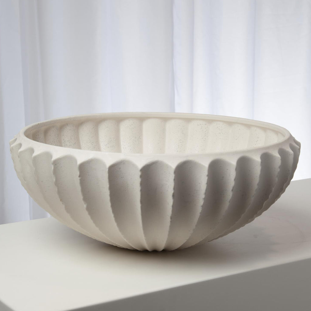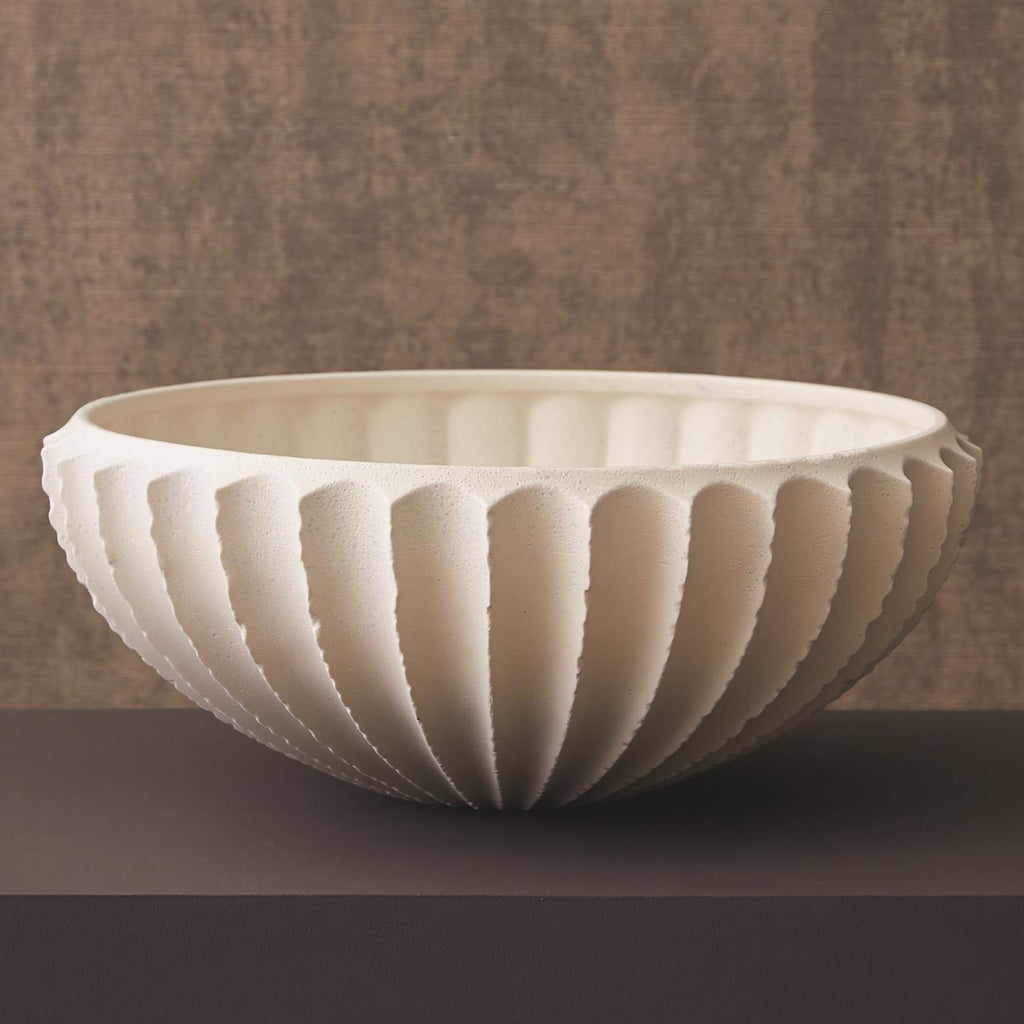 Crisp, symmetric ridges accentuate the rounded shape of the Sawtooth Vase. Textured, matte white Portuguese ceramic.