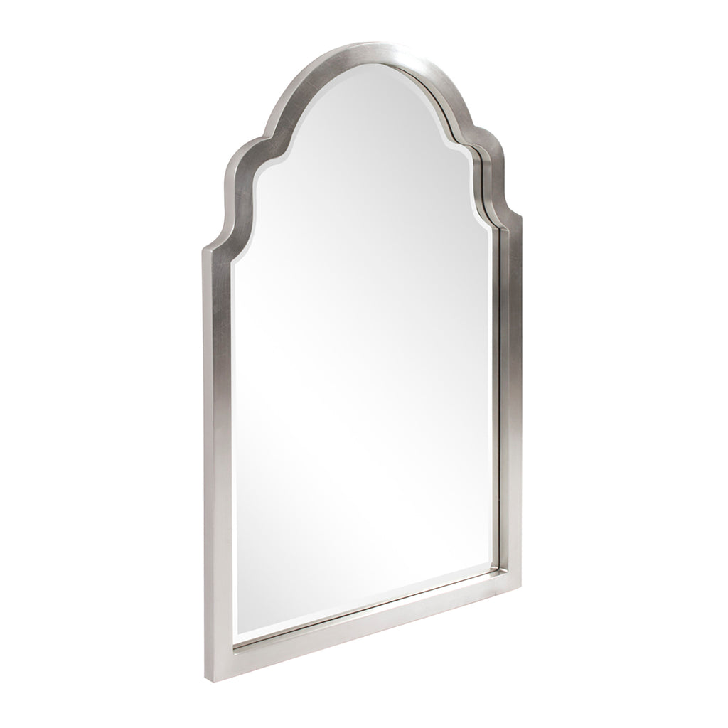 The Sultan Mirror is a gorgeous piece. The wood frame is shaped like a fancy arch way. It is then finished in a lovely bright silver leaf. It is a perfect focal point for an entryway, bathroom, bedroom or any room in your home. D-rings are affixed to the back of the mirror so it is ready to hang right out of the box! The mirror on this piece is beveled adding to its style and beauty.