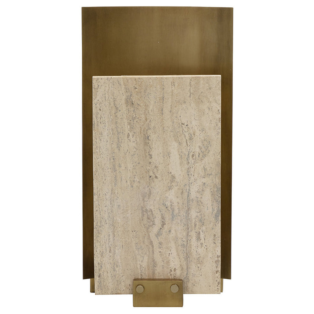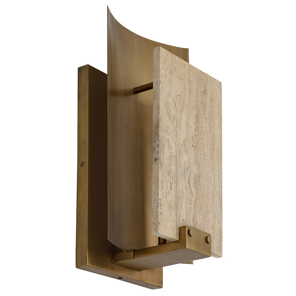 The Ciana Sconce embraces modern sophistication by bringing natural travertine and antique brass iron together. Using only a single bulb, the warm tones of travertine shine through to cast a stunning glow.