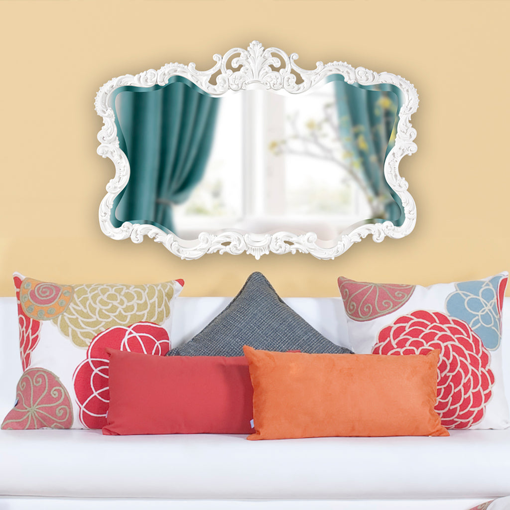 The Talida Mirror is a lovely piece featuring an ornate, textured frame adorned with decorative flourishes. The entire piece is then finished in a glossy lacquer. It is a perfect piece for an entryway, bathroom, bedroom, or any room in your home! The Talida Mirror can only be hung as shown and the glass is beveled adding to its chic style and beauty. It fits into a wide array of decor styles ranging from Traditional to Contemporary.