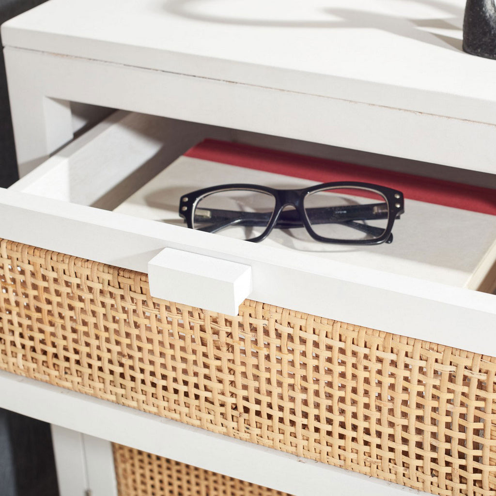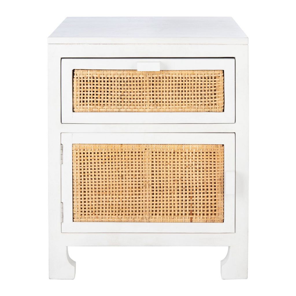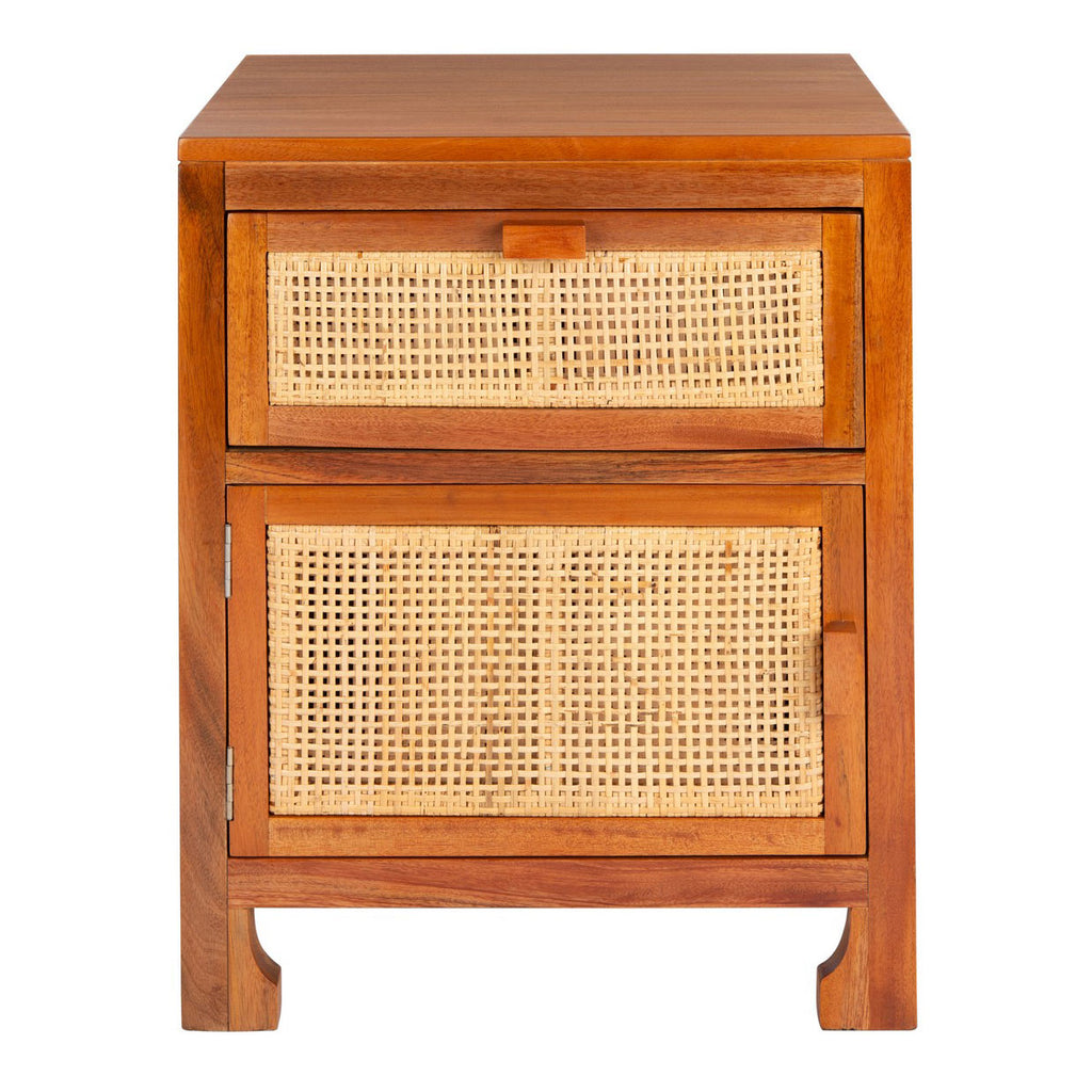 This cane nightstand enriches your bedroom’s aesthetic with relaxed coastal ambiance. THe door and drawer are given soothing tropical with natural rattan, pairing beautifully with its matching natural finished mindi wood frame. Subtle metal pulls elevate the look, making it perfect for any décor.