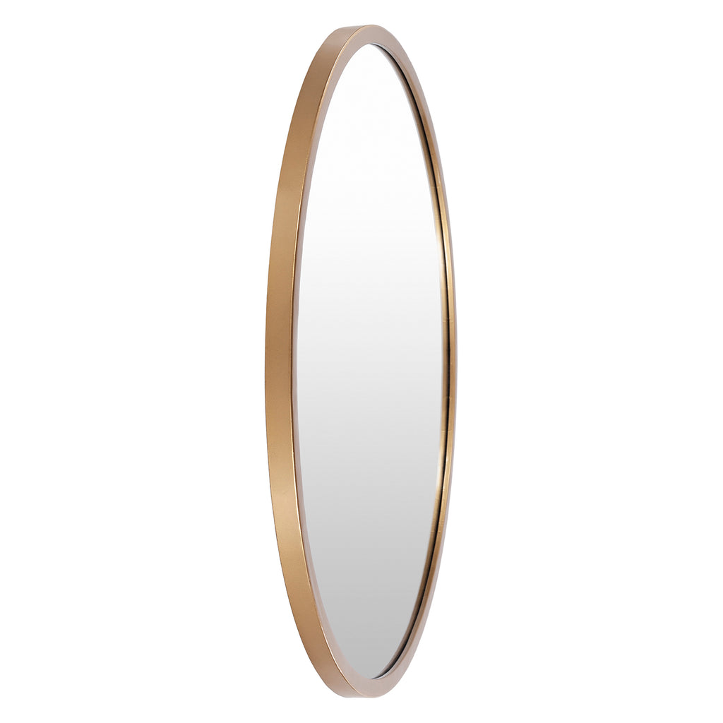 The Uzma Round Wall Mirror offers an enduring presentation of the modern form that will competently revitalize your decor space. For optimal product care, wipe clean with a dry cloth.