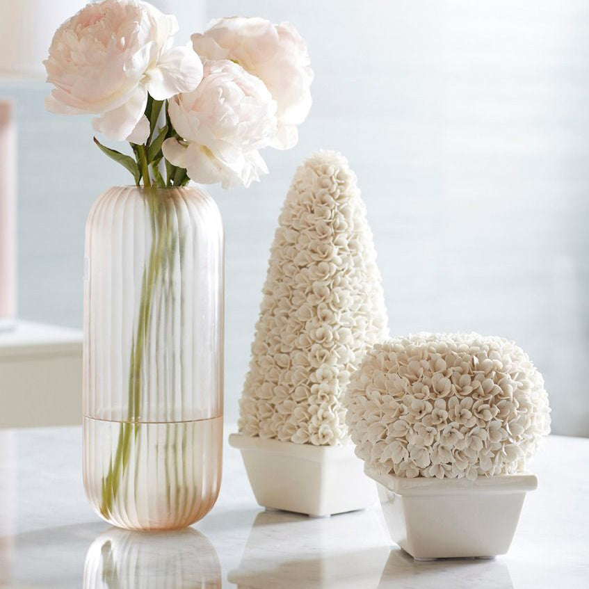 The V&H artisans have reinvented the classic topiary as modern art by using a minimalist color palette which emphasizes geometry and proportion. With tiny individually crafted leaves that are almost translucent in their delicacy, the Boston Boxwood topiaries invoke the romanticism of the exquisite French gardens of the past.
