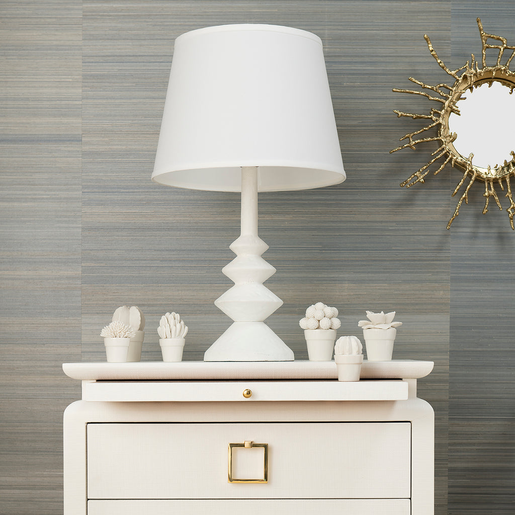 The V&H Ernst Lamp is inspired by a 1930s classic. Each piece is born of molten metal poured into a mold handcrafted by skilled artisans. The lamp is powder coated in a soft white finish. A choice of shade allows for personalization.