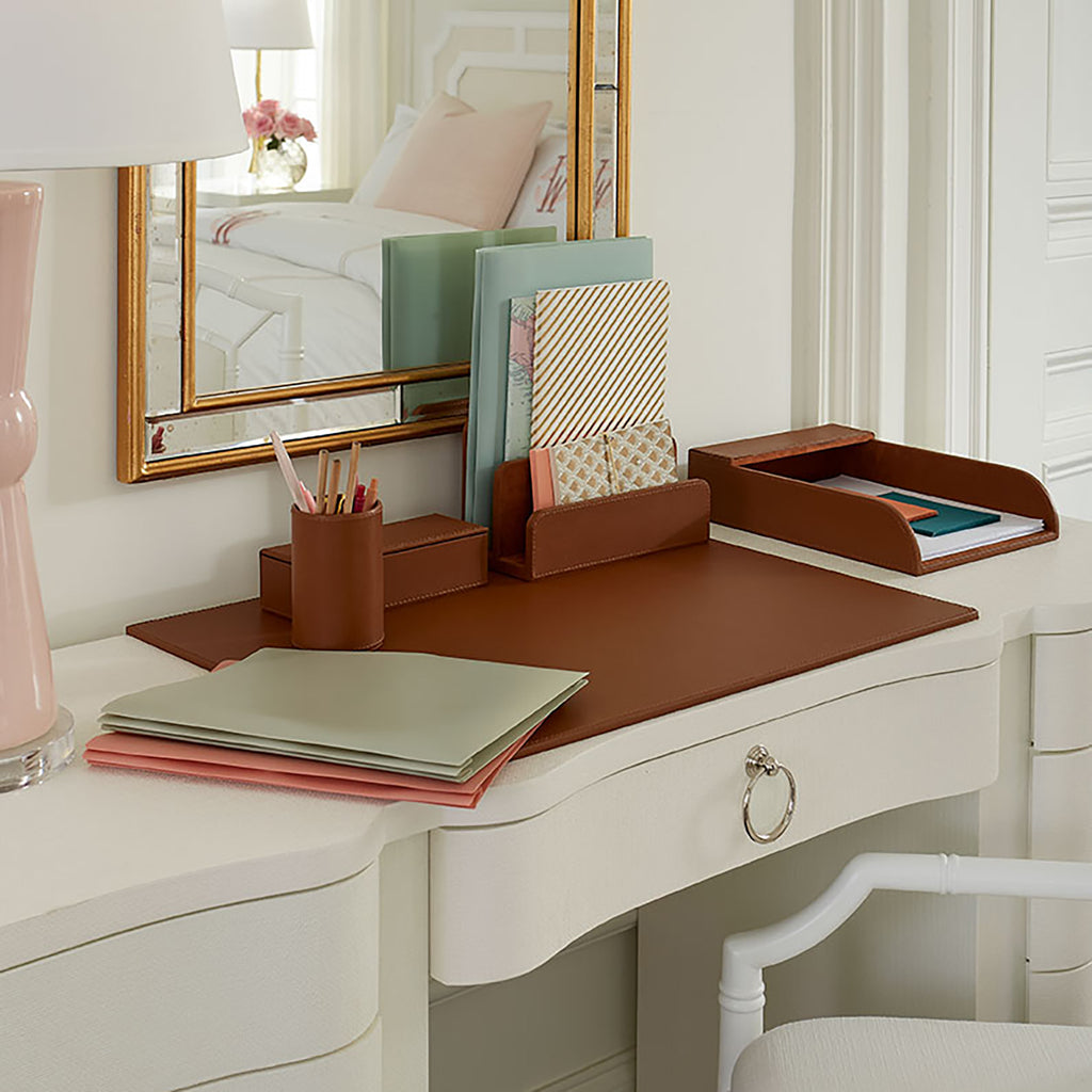 Designed with an equestrian flair, the Hunter collection is an ensemble of pieces made from top-grain hide. It's a luxurious and beautiful addition to any desk.