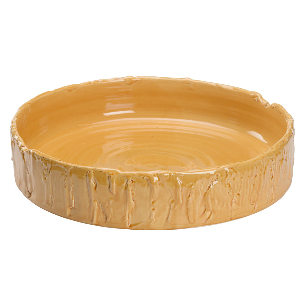 Hand sculpted in Italy, the Capaci Bowl provides beauty and texture to any table setting or home decor. Finished in a glaze, this bowl will bring a pop of color as a tray on an ottoman or cocktail table.