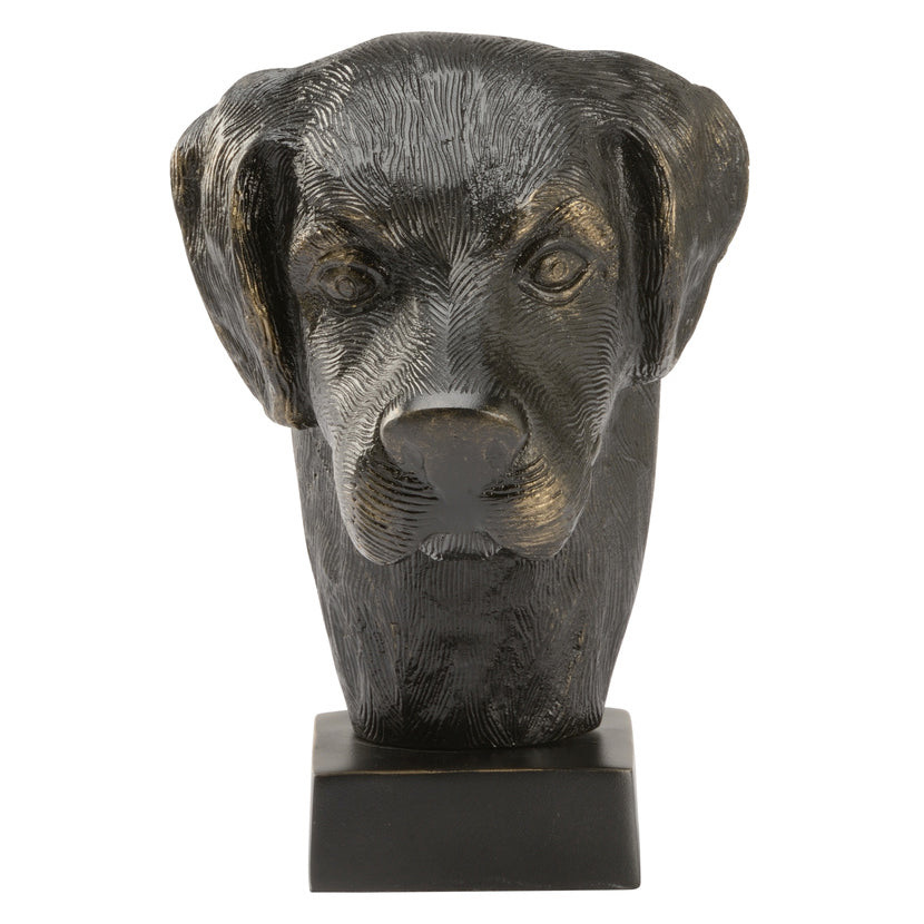 Perfect for a book shelf or desk, this bronze dog head sculpture brings a rustic touch to your living room or office.