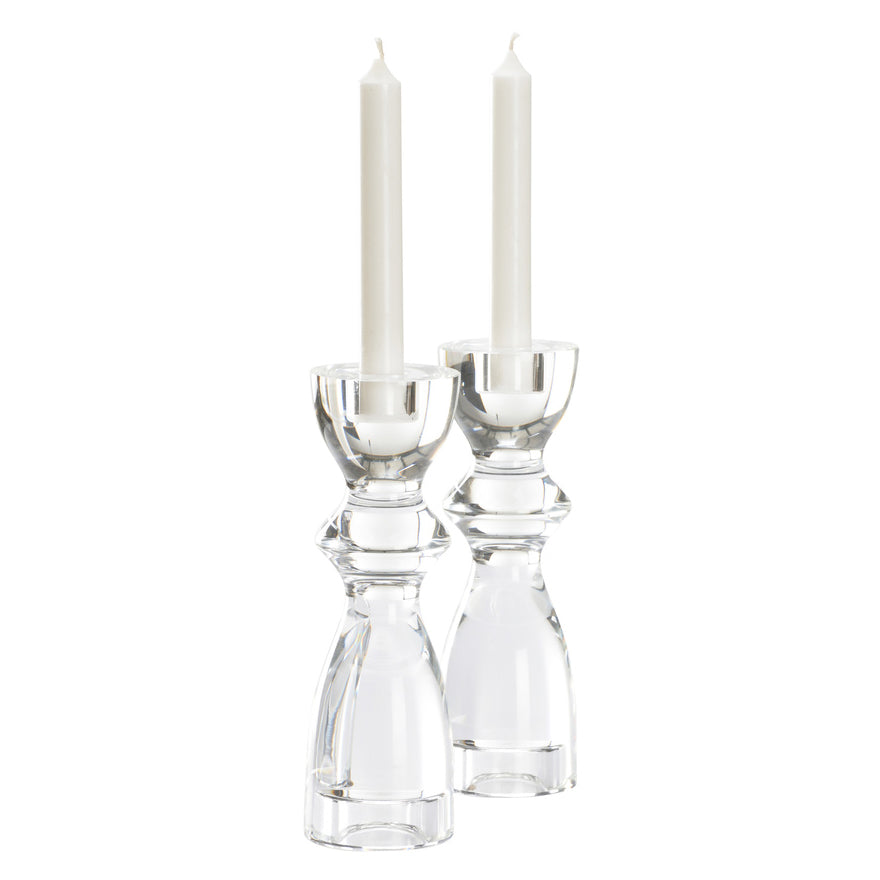 Two for the price of one, Gris Candlesticks are an elegant pair of candleholders that can be used with a taper, votive or 1-1/2in pillar candles. Turn the clear crystal design for a different look.