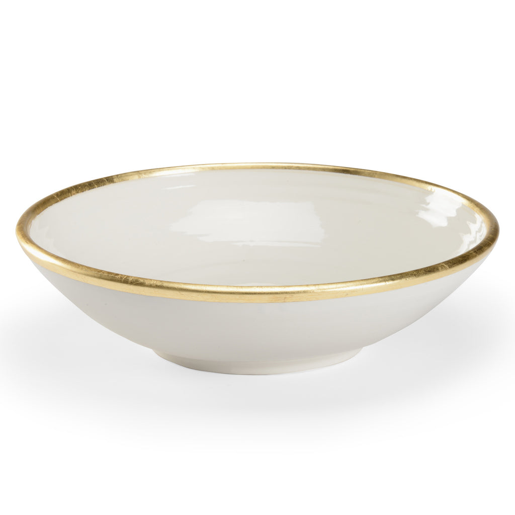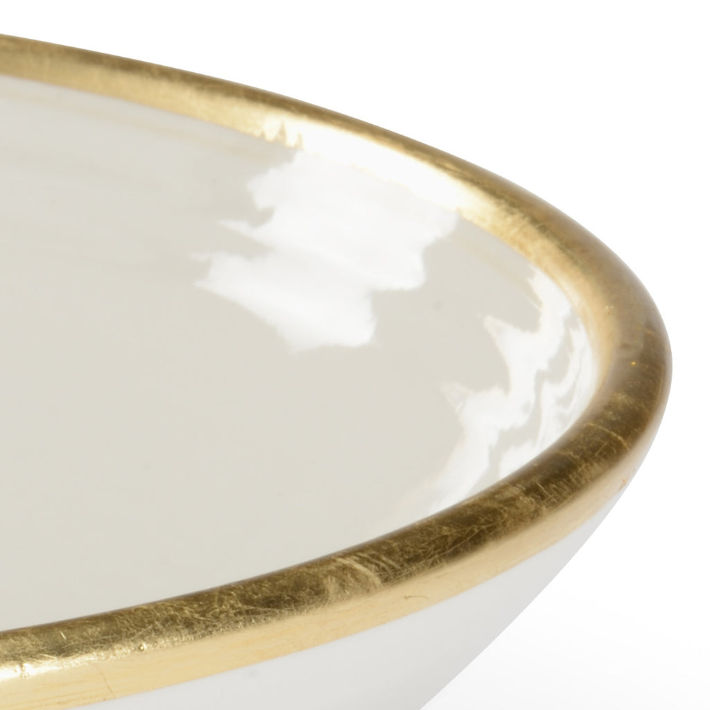 Wildwood's luxurious texture comes to life on this decorative bowl. A gorgeous accent for a dining room table or living room coffee table, this piece is sure to catch the eye. The Wildwood Melchio decorative ceramic bowl in Cream with a Gold leaf edge.