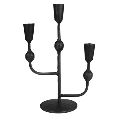 Forged of metal with a natural black finish, this simple taper candelabra is strong in character and even further luminous when amassed.