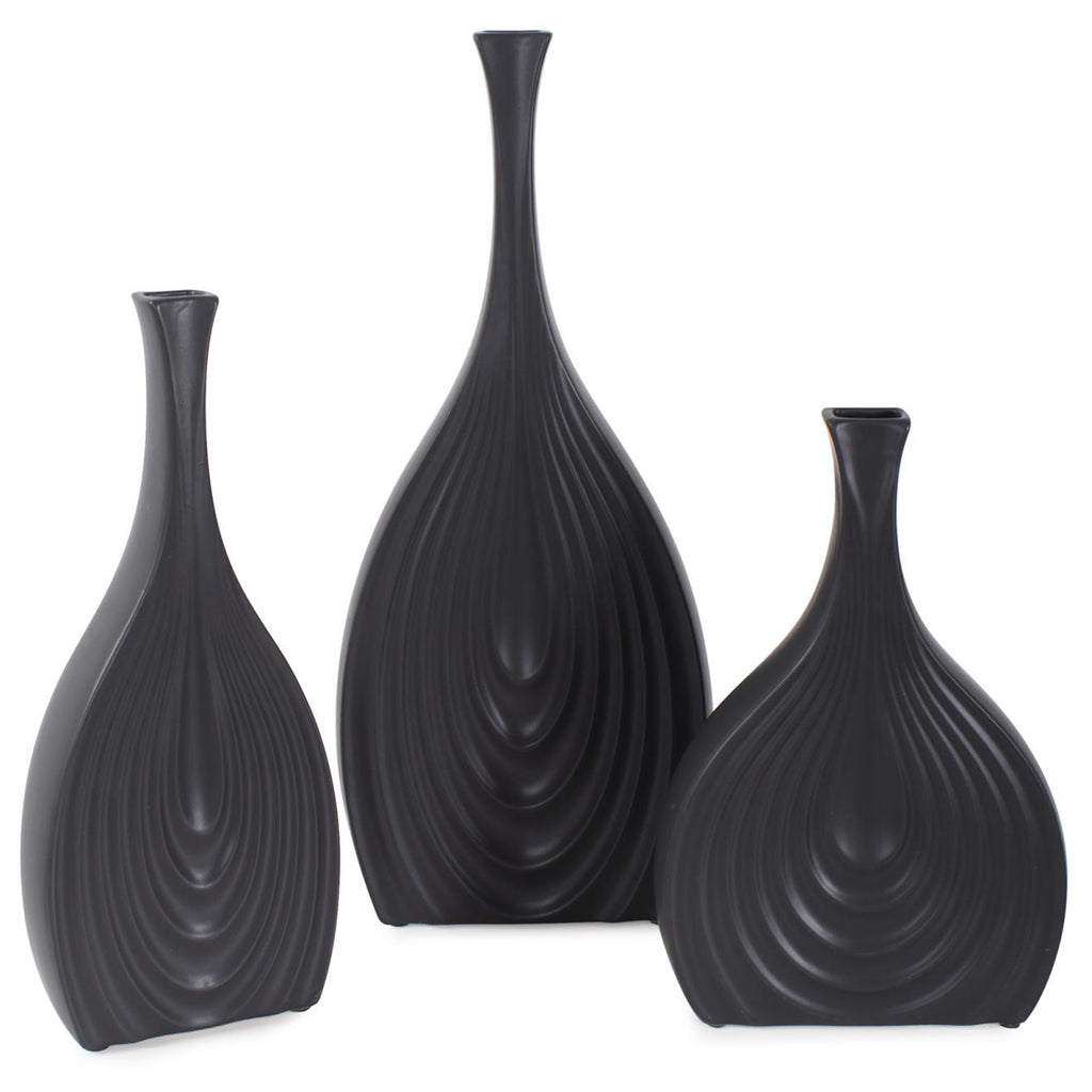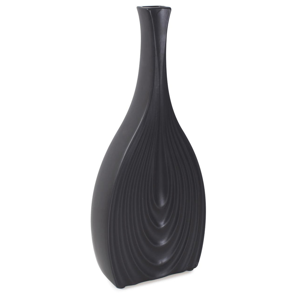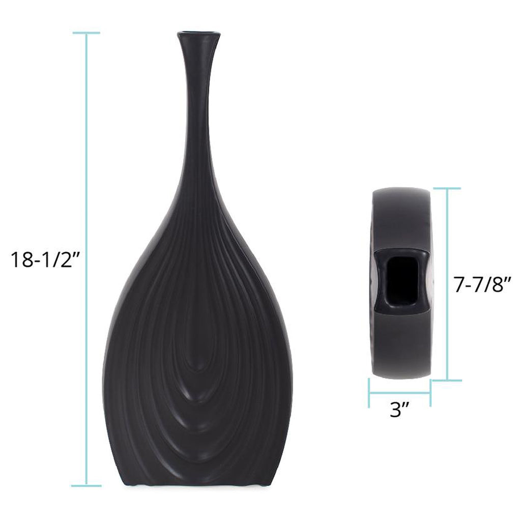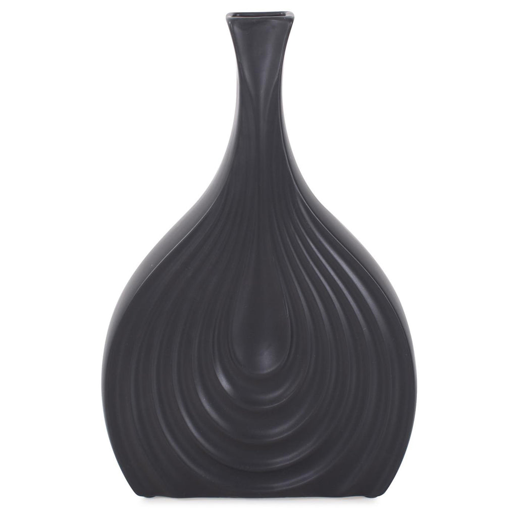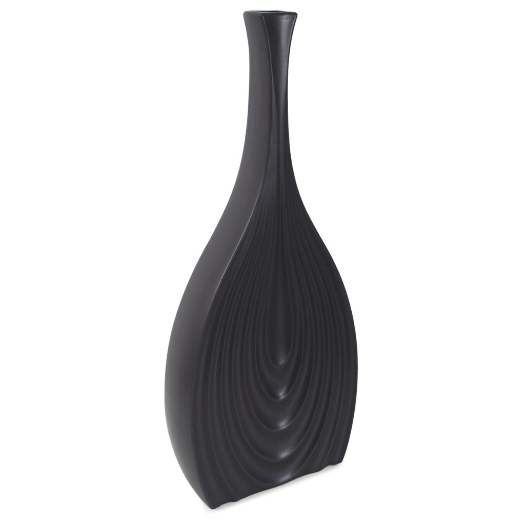 This vase caters to various design needs. Its unique ribbed and tapered design mimics the delicate layers of an onion, adding a touch of organic texture to its matte black finish. The contrast between the sleek, dark exterior and the intricate ribbing creates a mesmerizing visual and tactile experience, creating a unique addition to any room.