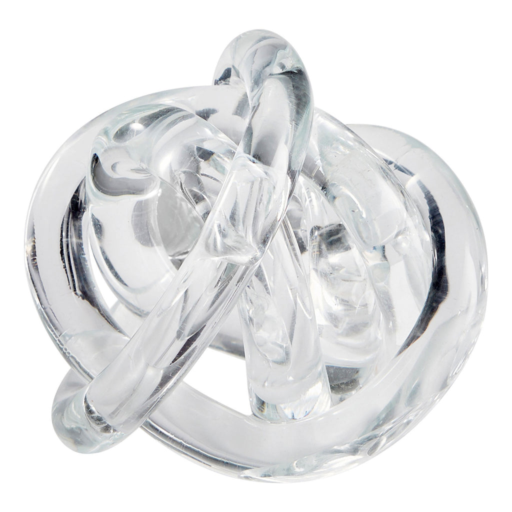 Encourage an interesting twist on modern decor with this small, clear filler. The knotted and twisted silhouette creates a simple focal point in any bathroom. Artisan Produced: This product, or portions of this product have been hand crafted by artisans. Each piece is unique and can vary in finish, tone, texture and color.