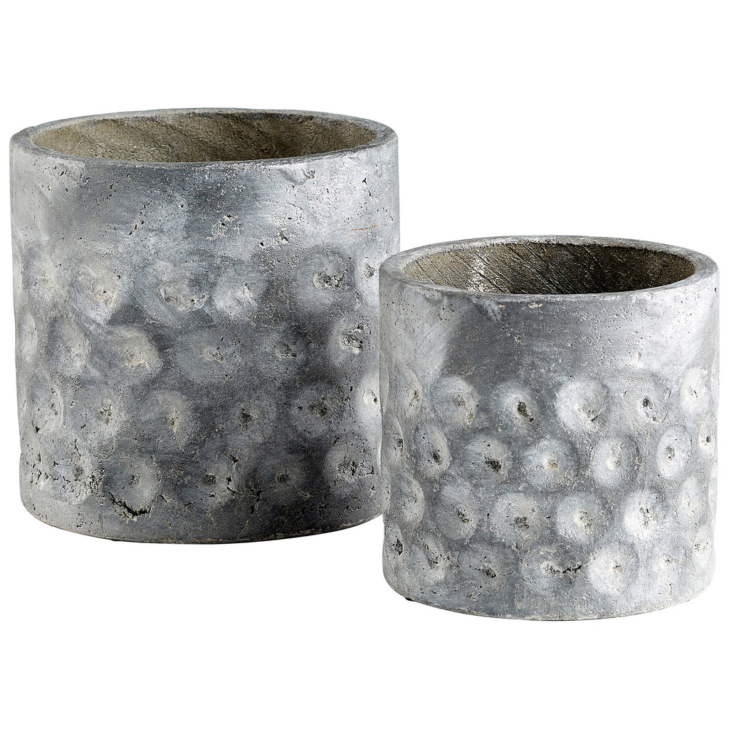 The beautiful and rustic Cyan Design Potomac planter is constructed of high-quality ceramic material. This vessel's unassuming styling is fully embodied by its pewter grey finish and carefully positioned ovate indentations surrounding the lower portion of the exterior. A truly masterful work of art, this vase is suitable for both aesthetic and functional purposes, making it an excellent addition for enhancing the ambiance of any residential or commercial design project.