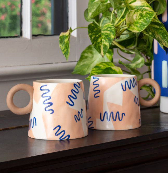 Freshside Mug features a chic retro design, simple swooped hand-hold and a glazed finish. Food safe and versatile, it’s a fun way to enjoy your tea and coffee, or use it for your favorite plant. Holds 14 fluid ounces