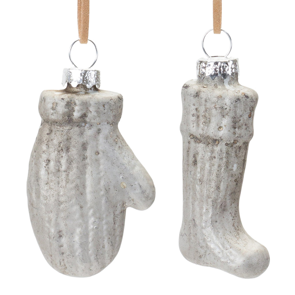 Add a traditional touch to your Christmas Tree with this beautiful set of Glass Mitten and Stocking Ornaments. Featuring 12 pieces, this set's rustic silver and grey tones and distressed finish are the perfect combination to create a memorable display. The quality glass composition with cord hanger is sure to endure for seasons to come. Whether you're adding a touch of cheer to your home or gifting to a loved one, these ornaments will definitely bring smiles to your home.