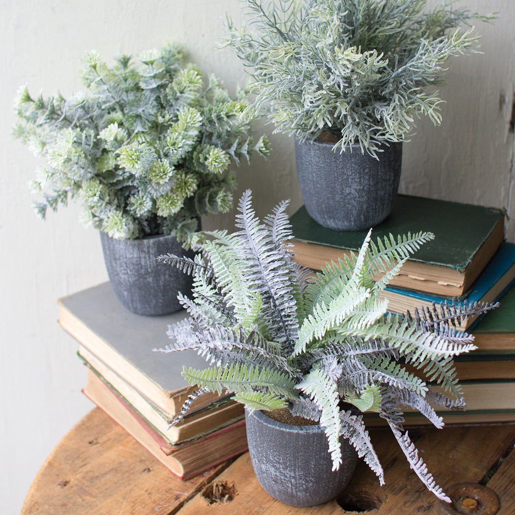 Want the green look without the green thumb? This set of 3 faux ferns are the perfect accent to brighten up any area of your house! Looks great on a shelf, table, or mantle!